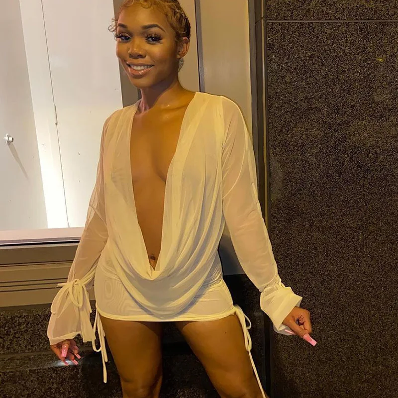 GX21446 Boutique 2022 Sexy Mesh See Through Night Club Wear Vendor Women Backless Long Sleeve Tops and Mini Skirt 2 Piece Set