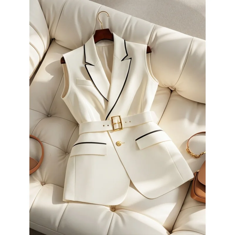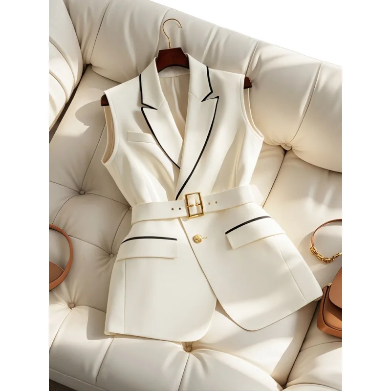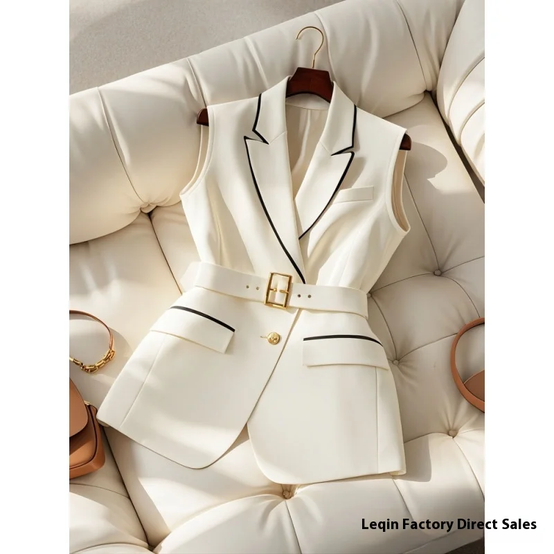 GX0426 Fashion Clothing Women Sleeveless Lapel V-neck Ladies Jacket with Belt