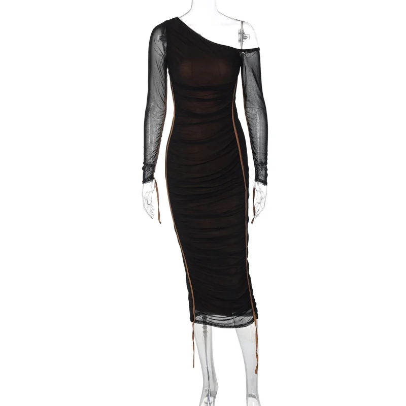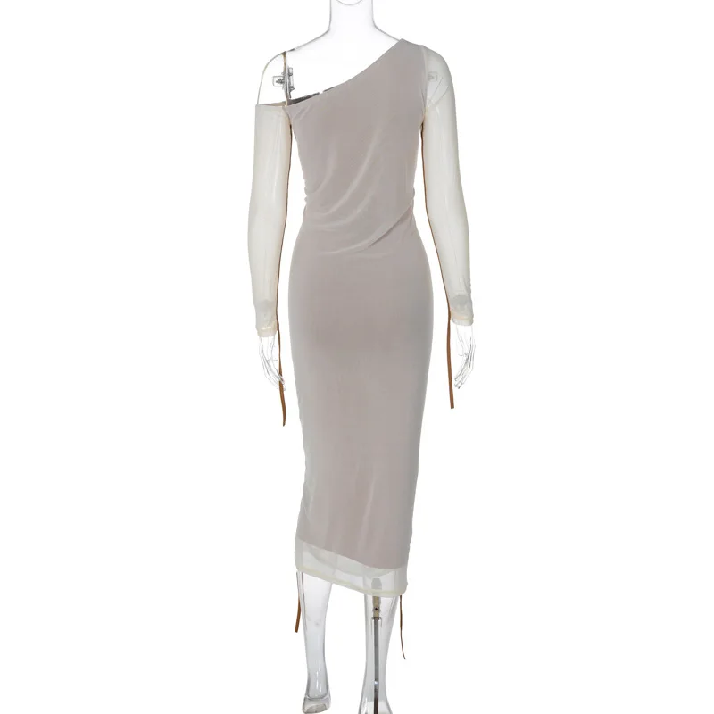 GX15619 Fashion Spring Fall Clothing Vendor Elegant Street Wear Women Long Sleeve Dress Sexy Irregular Neck Mesh Dresses