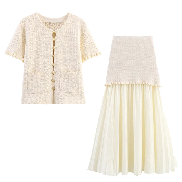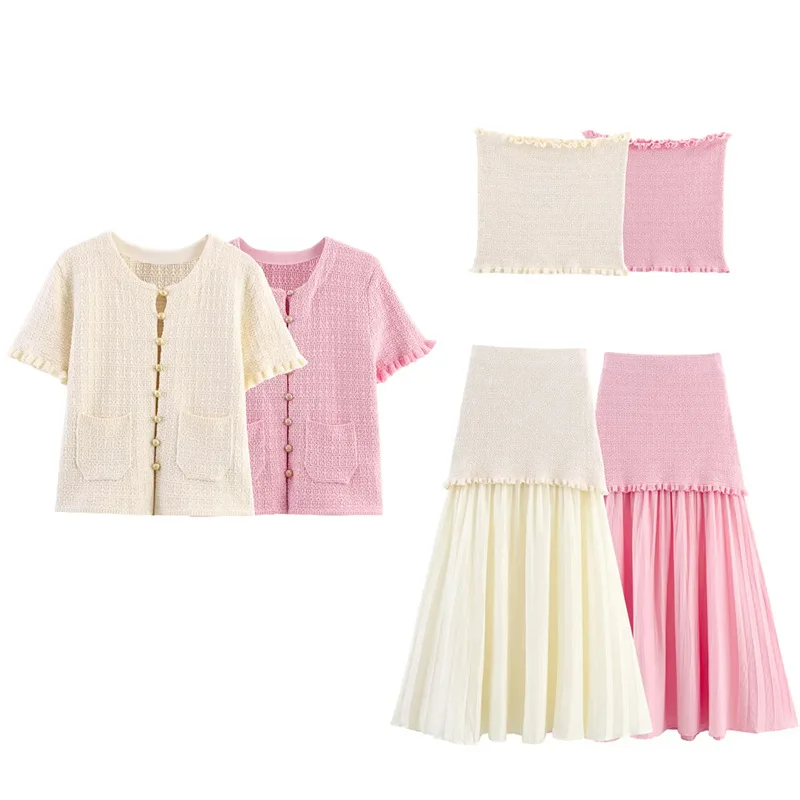 GX2041 Fashion 2026 Women Clothing Boutique Street Wear Ladies Short Sleeve Knitted Tops and Maxi Skirt 2 Piece Set
