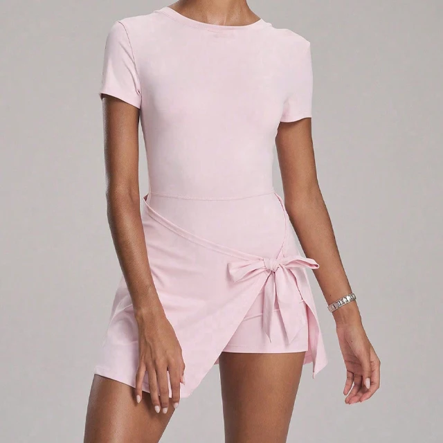 GX2418A Fashion 2026 Summer Women's New Sexy Short Sleeve Mini Dresses Solid Elegant Irregular Sport Dress