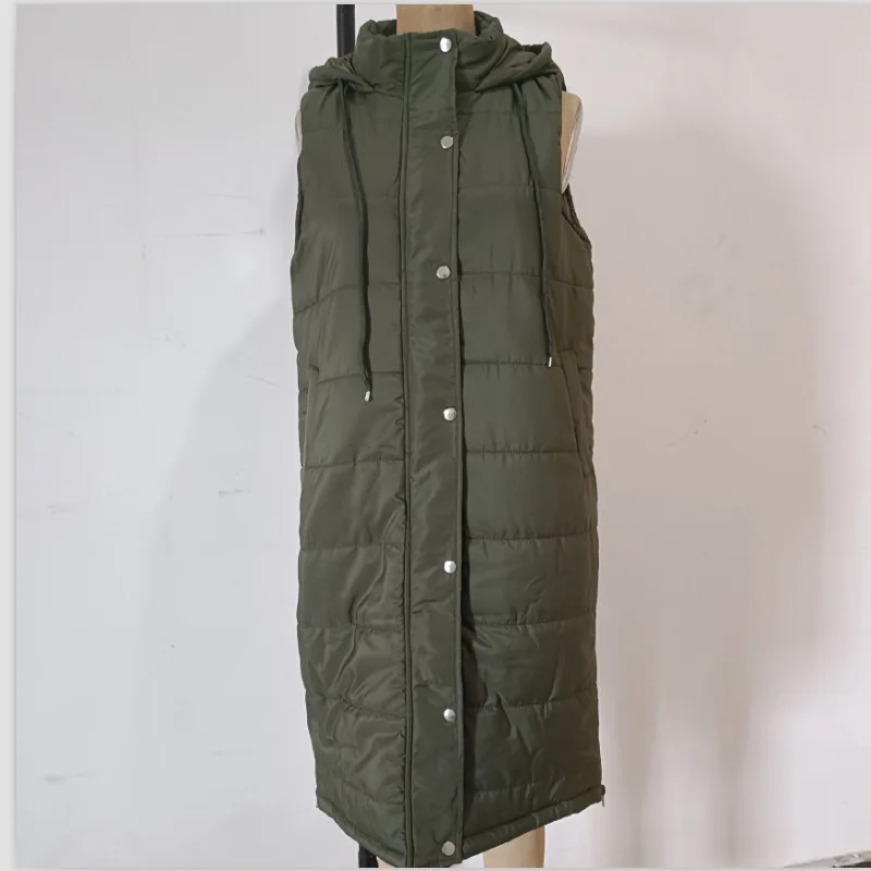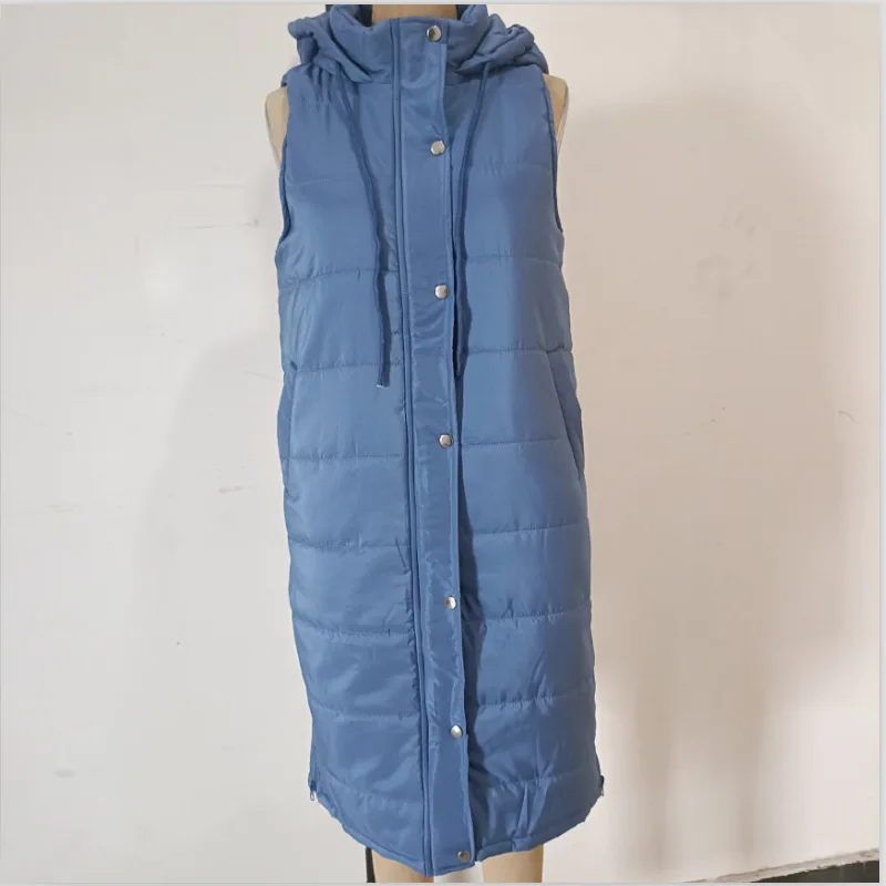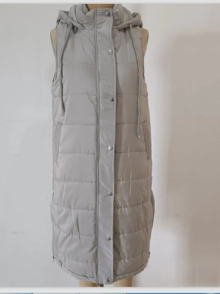 GX0502 New Arrival Winter Plus Size Women Casual Puff Jacket Hooded Bubble Down Coat Long Sleeveless Vest