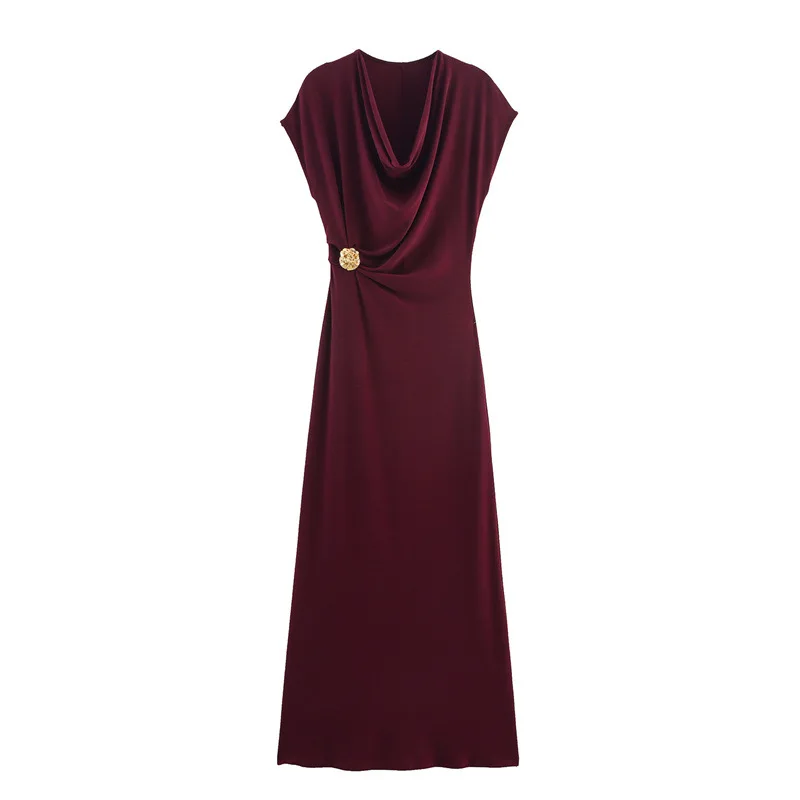ZYHT 73849 European Wholesale Fashion Casual One Shoulder Ruched Maxi Dress Side Slit Pleated Long Sleeve Dresses for Women