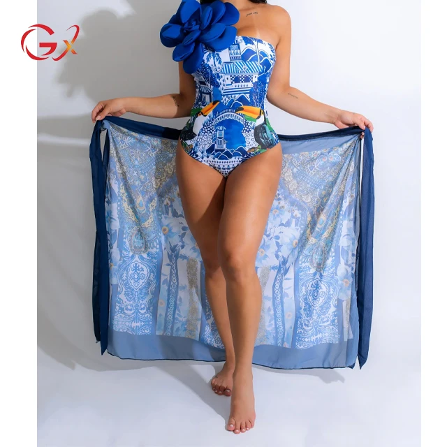 GX2529 Fashion Women Elegant Bodysuits Vendors 3D Big Three-dimensional Flower Swimsuit Sexy Swimwear and Cover Ups 2 Piece Set