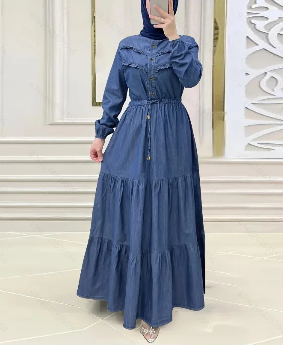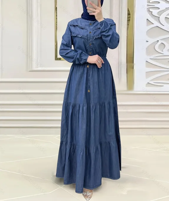 GX2592 Fashion 2026 Women's Denim Maxi Dress New Long Sleeve A-line Jeans Causal Dresses