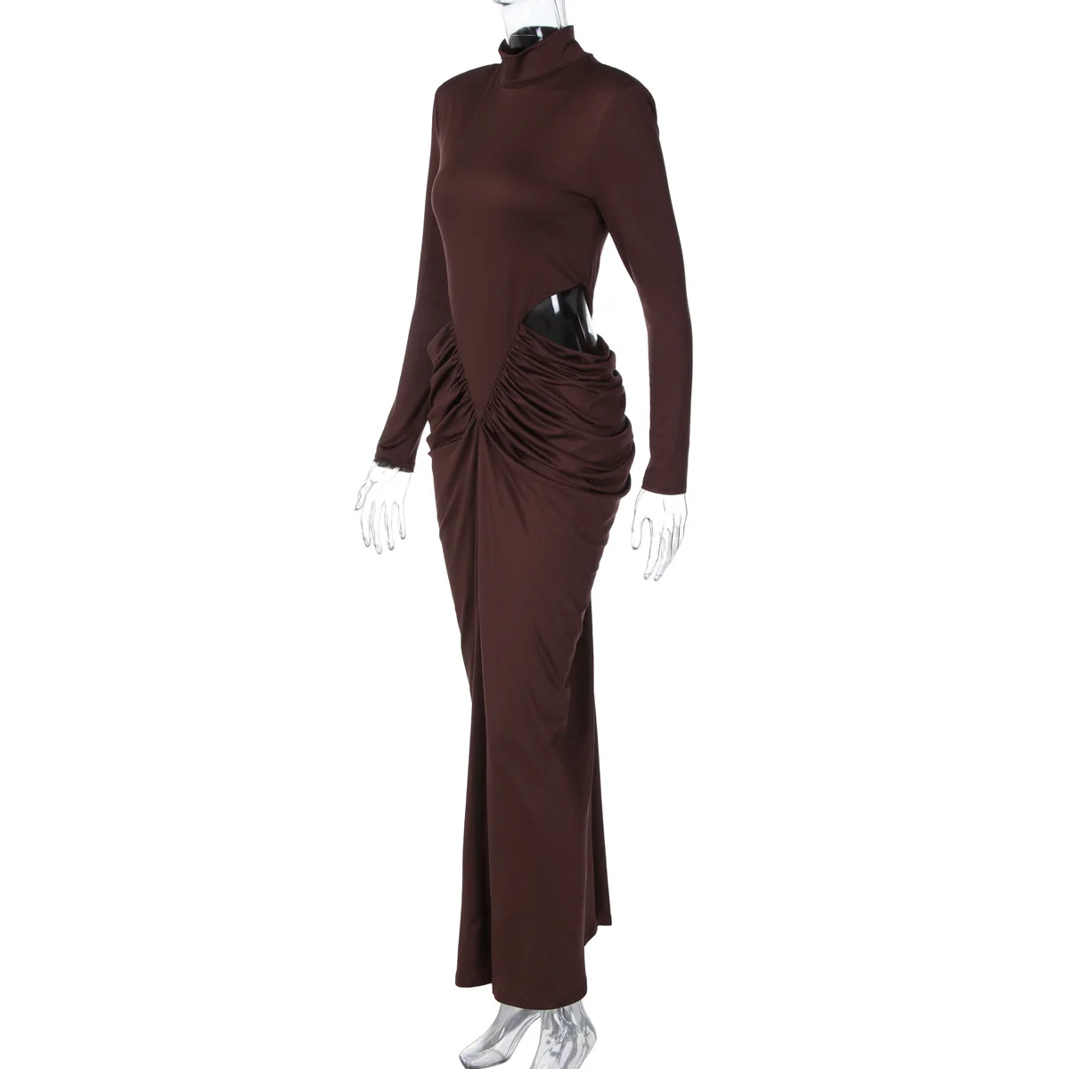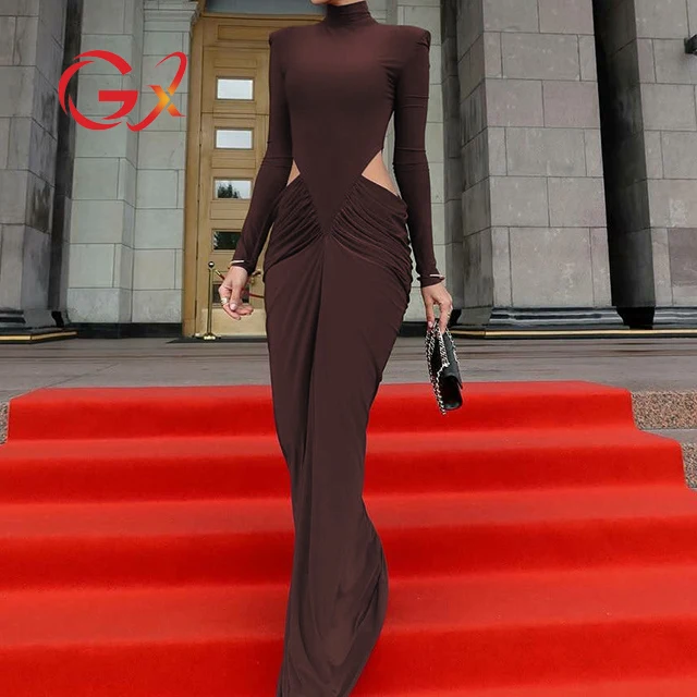 GX0052 Fashion 2026 Autumn Women Clothing Boutique Long Sleeve Turtleneck Party Dress Sexy Evening Backless Unique Maxi Dresses