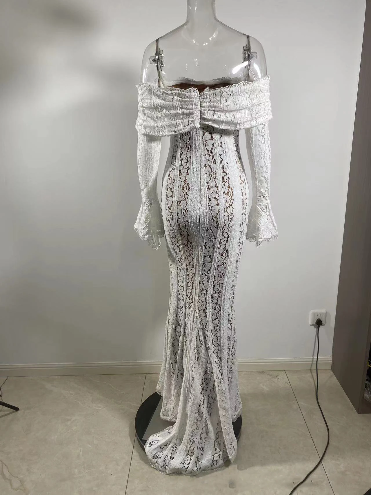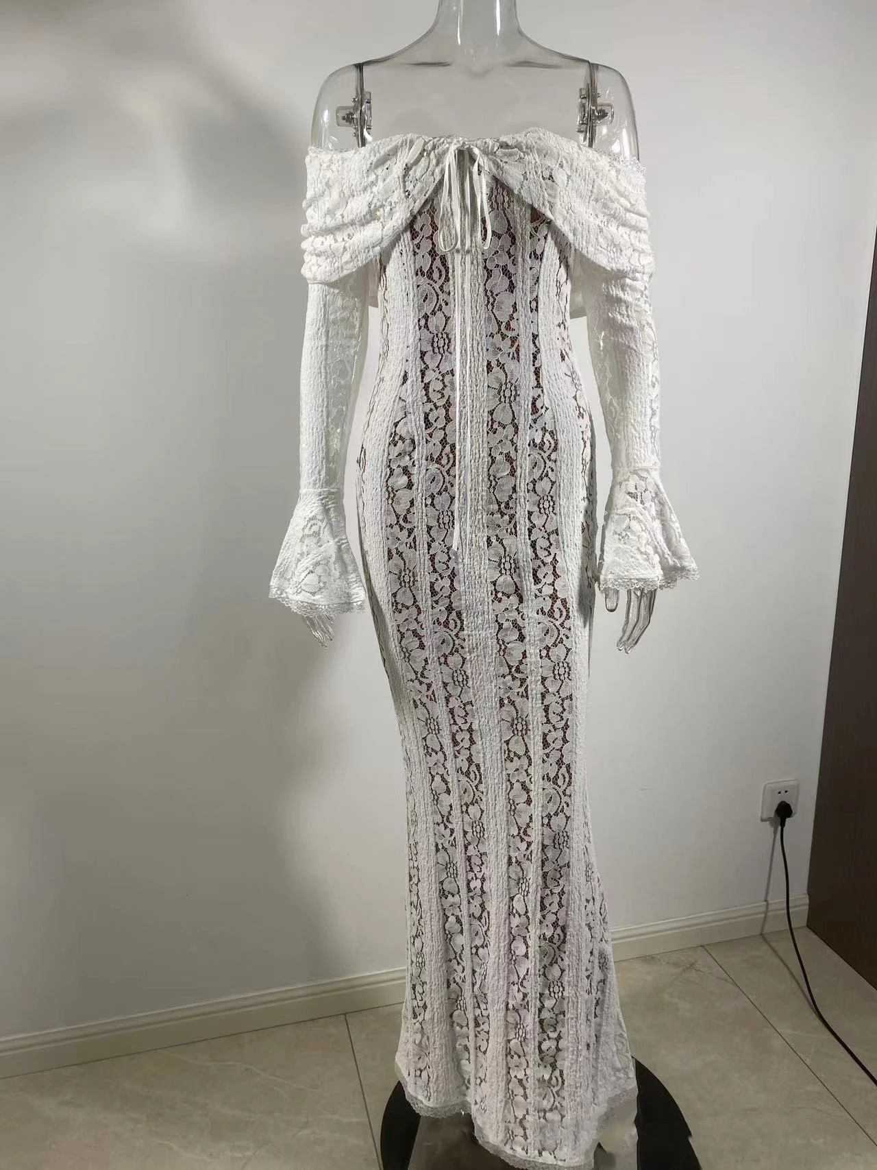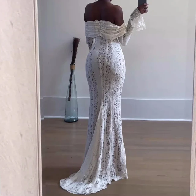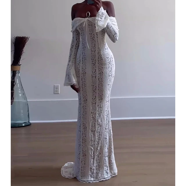 GX25097 High Quality Women Clothing Boutique Off Shoulder Sexy Long Sleeve Evening Lace Dresses Elegant Party Floor-length Dress