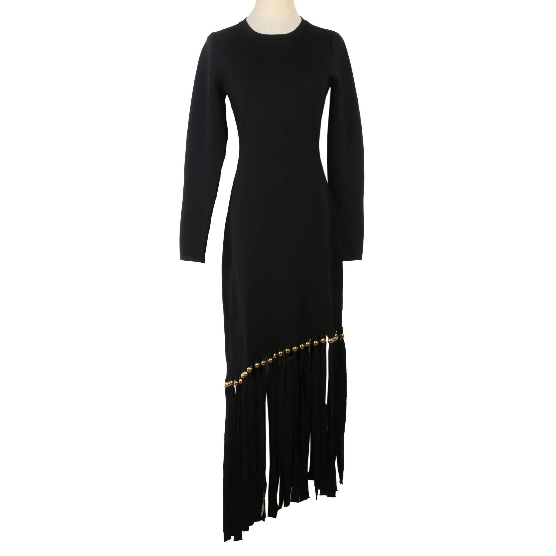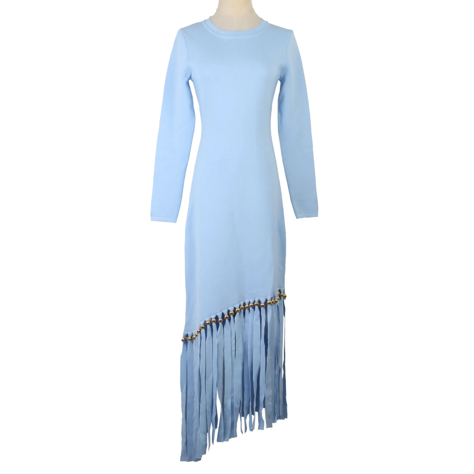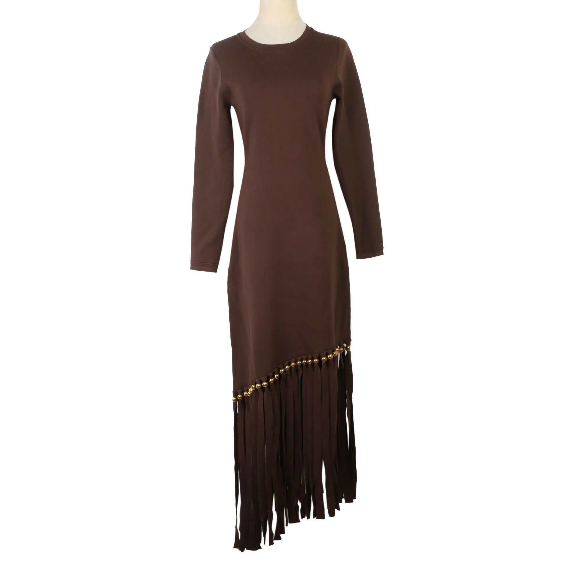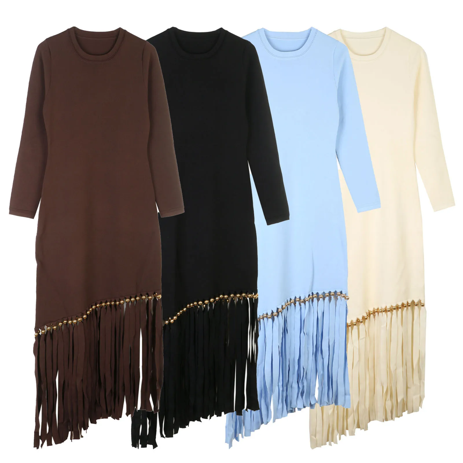 GX20008 Boutique 2026 Fashion Clothing Boutique Women Knitted Tassel Maxi Dress O-neck Long Sleeve Elegant Fall Winter Dresses