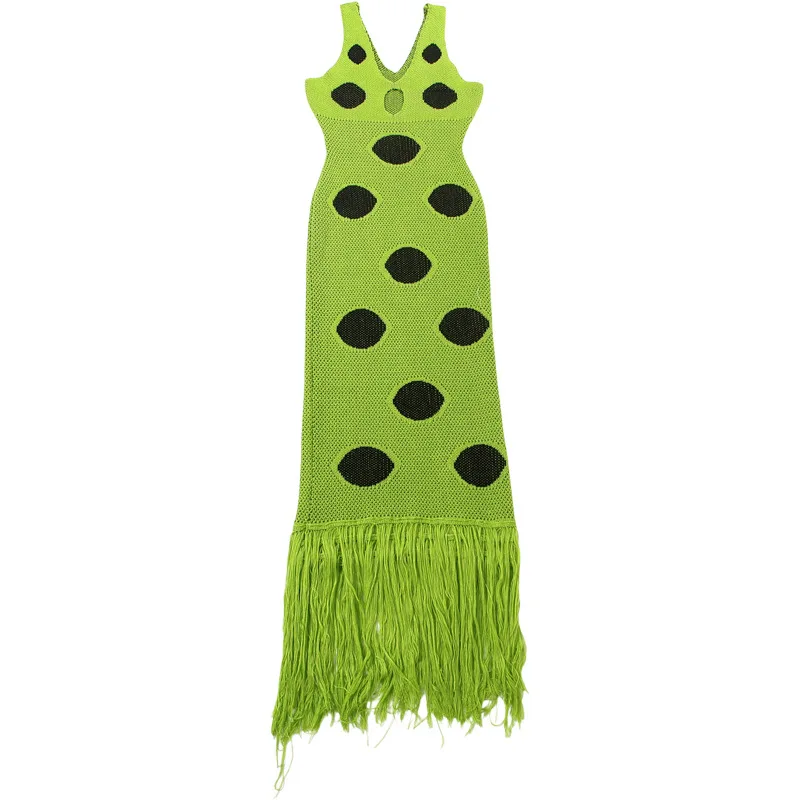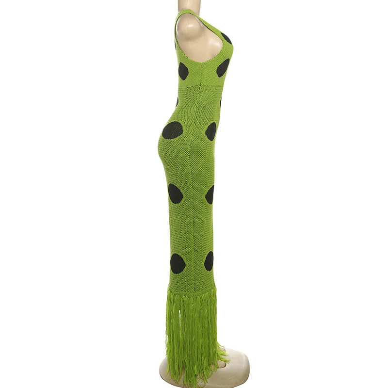 GX8177 Fashion 2026 Fall Clothing Boutique Sexy Street Wear V-Neck Knitted Maxi Dresses Sleeveless Elegant Long Tassel Dress