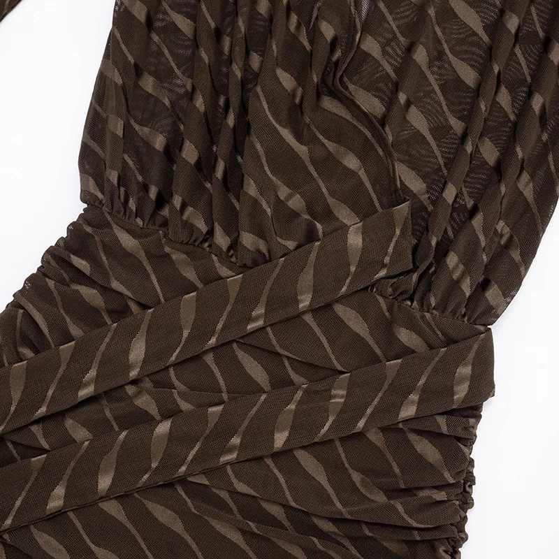 ZYHT 73963 Matte Satin Printed Geometric Pattern Maxi Women Asymmetric One Shoulder Ruched Hem Women Dress