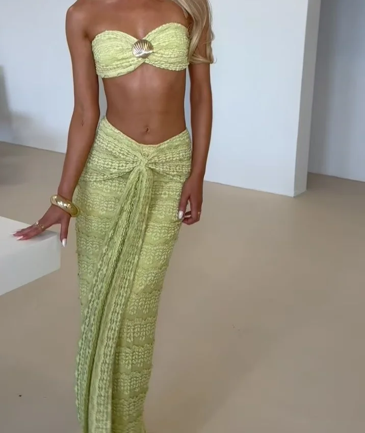 GX51751 Fashion 2026 Summer Clothing Vendor Sexy Nigh Club Wear Sleeveless Tube Top and Maxi Lace-up Skirt 2 Piece Set