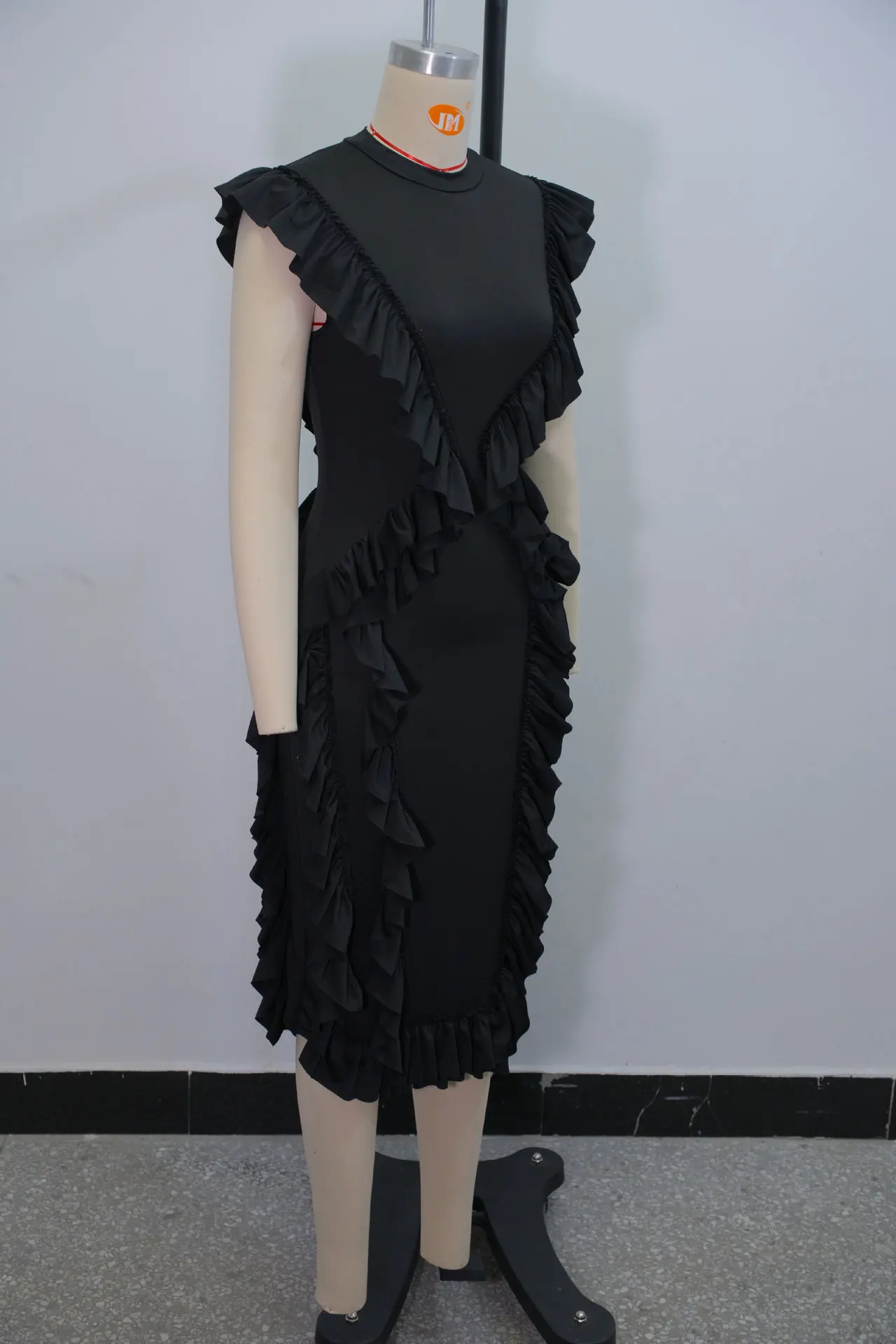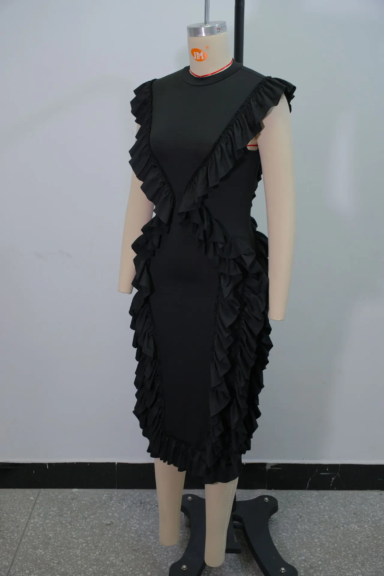 GX1136 Fashion 2026 Summer Clothing Sexy Sleeveless O-neck Ruffled Irregular Midi Dress Elegant Plus Size Party Dresses