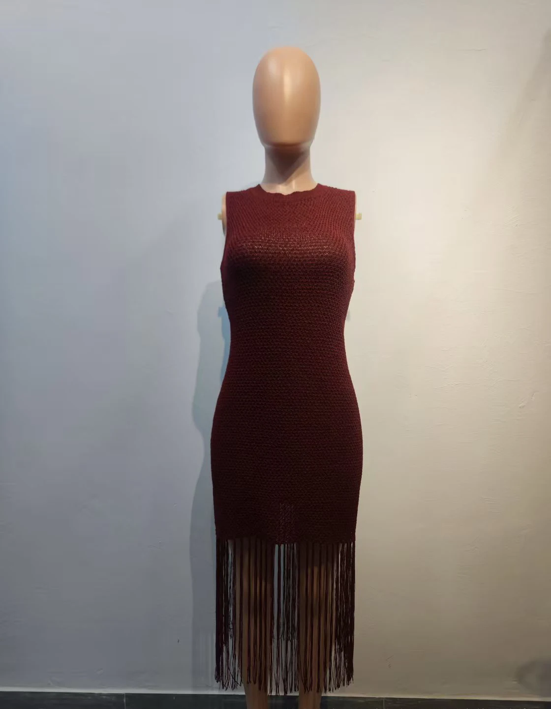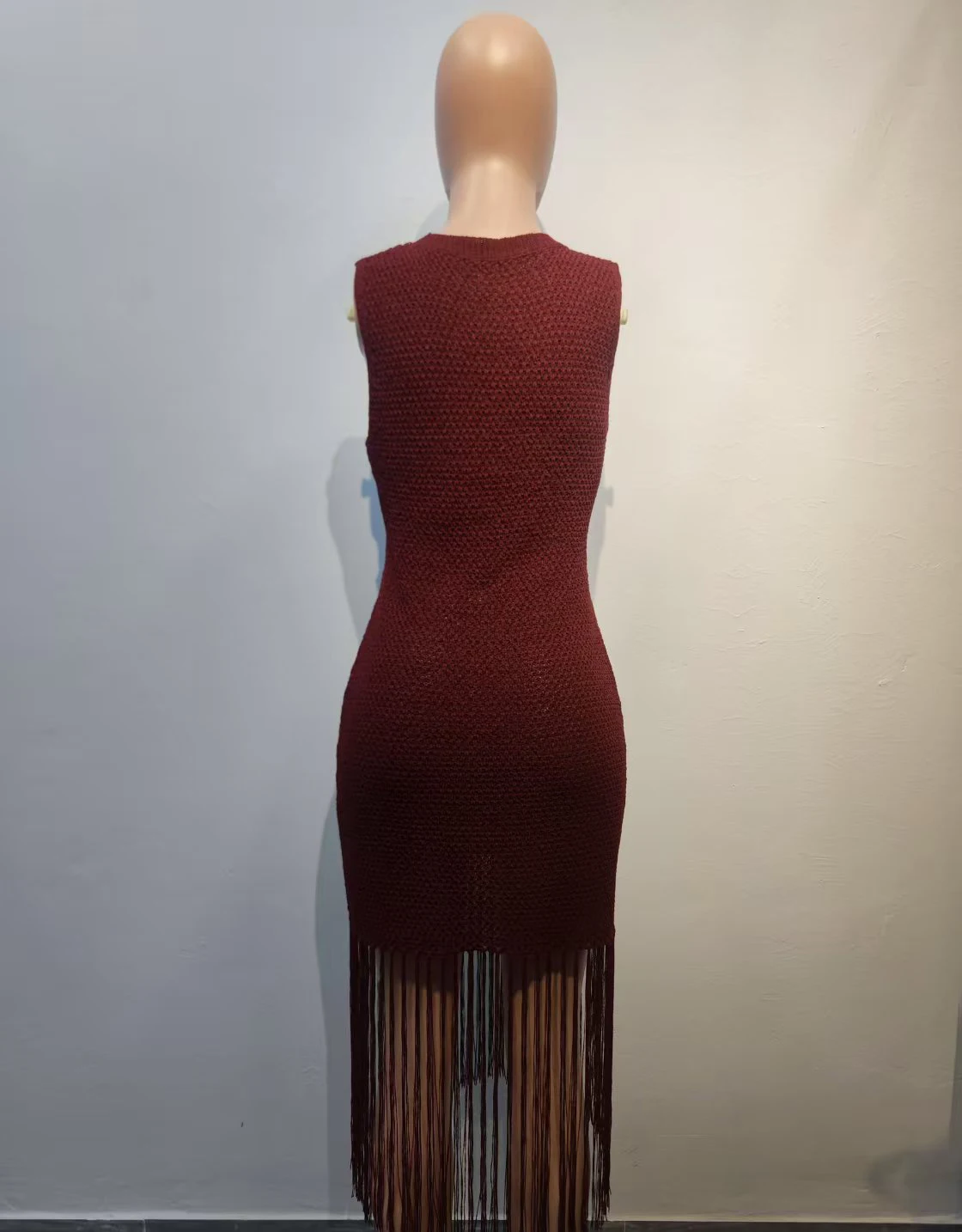 GX8267 Boutique 2026 Fashion Clothing Vendor Women Knitted Tassel Maxi Dress O-neck Sleeveless Elegant Casual Long Dresses