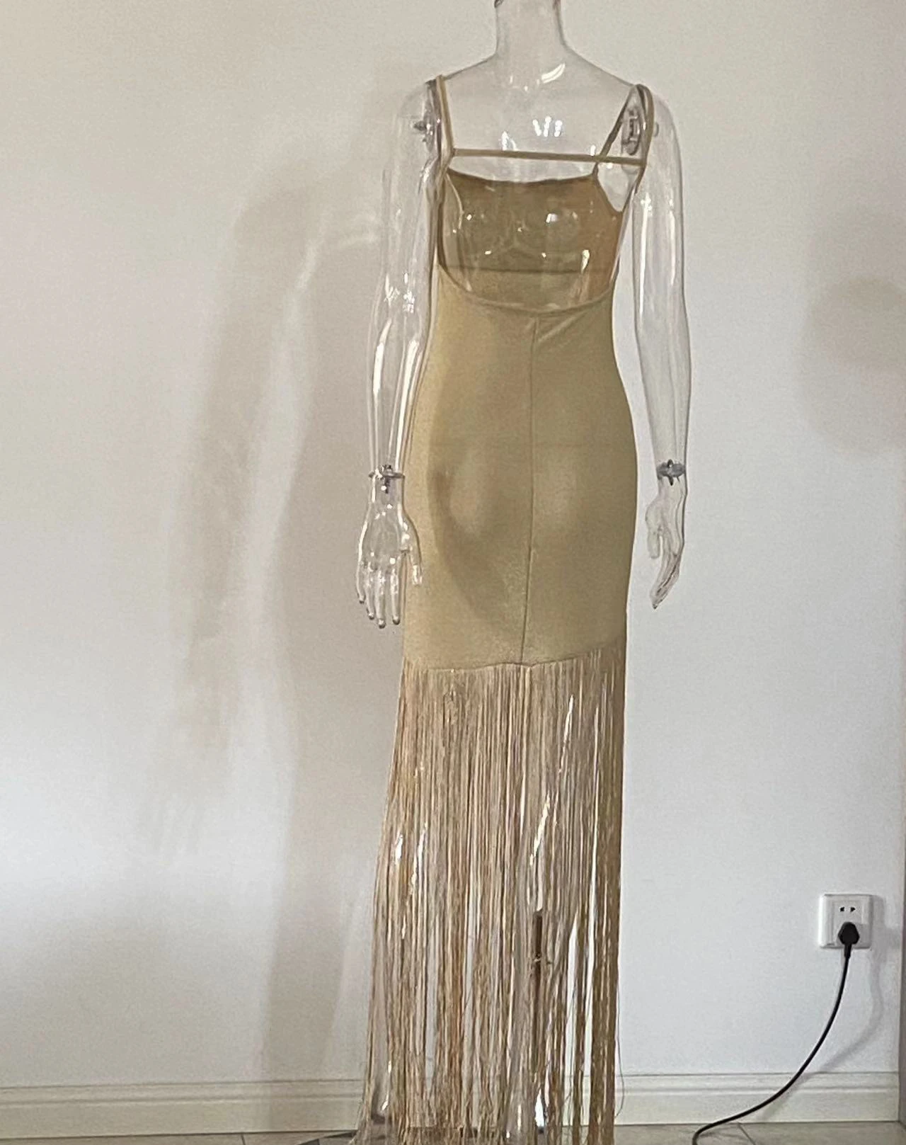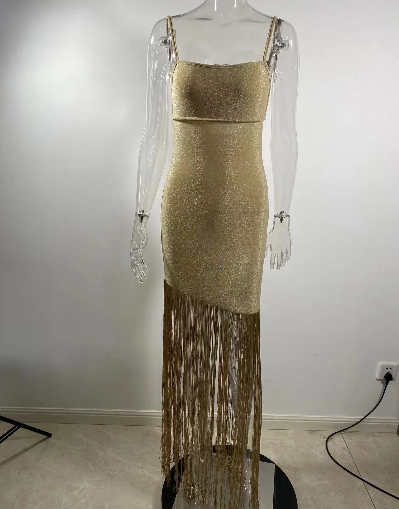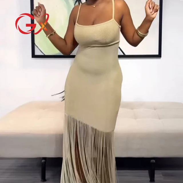 GX24091 Boutique Summer Sexy Spaghetti Strap Tassel Maxi Dresses Women Tight Casual Elegant Bling Party Long Dress