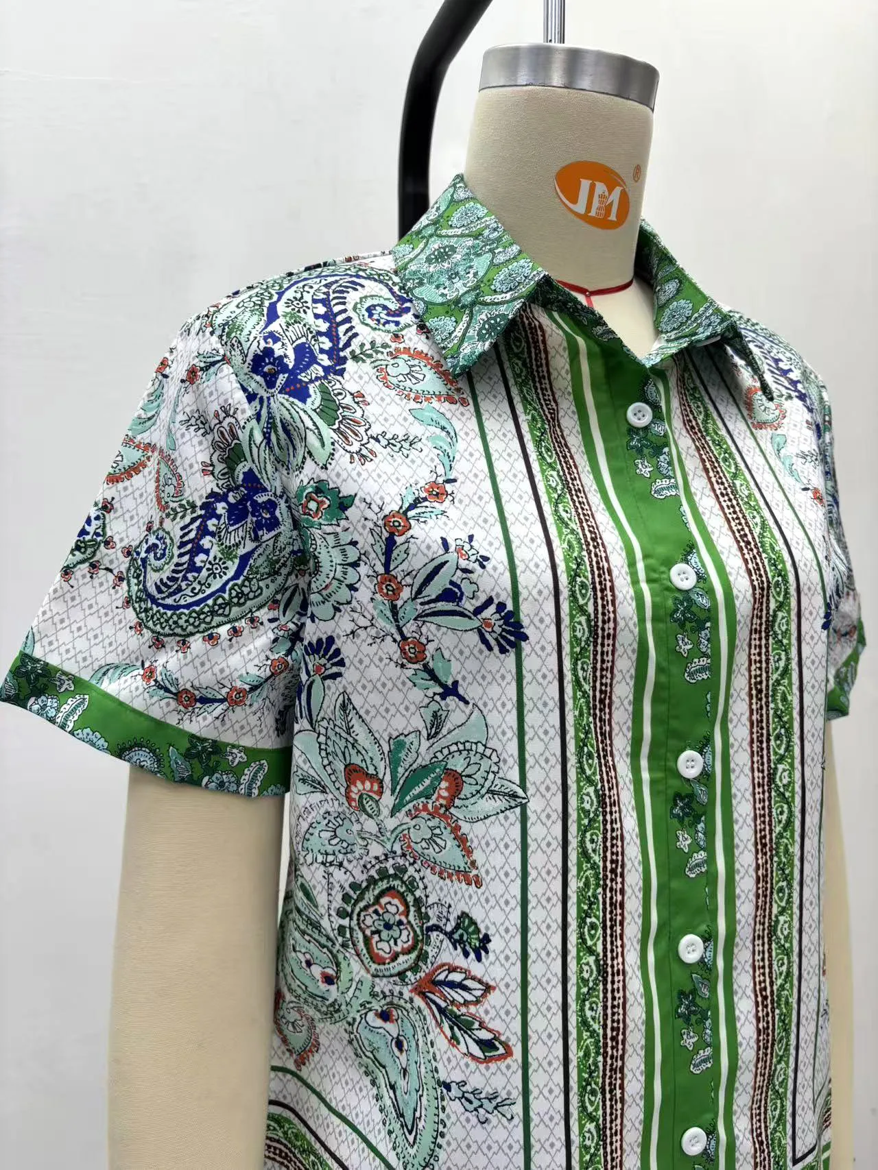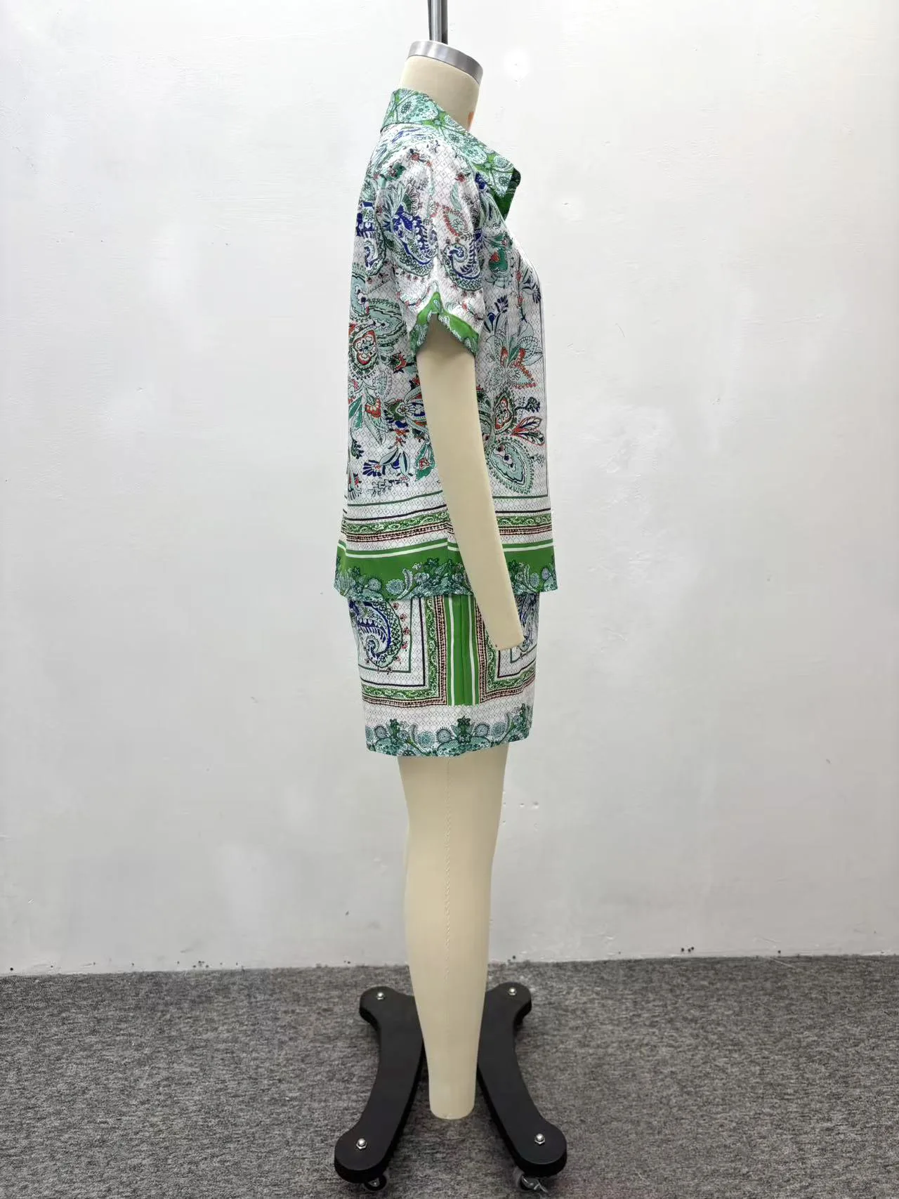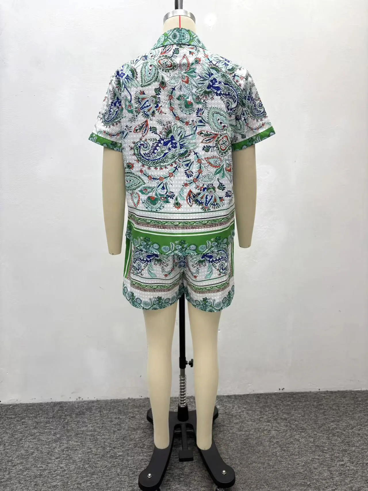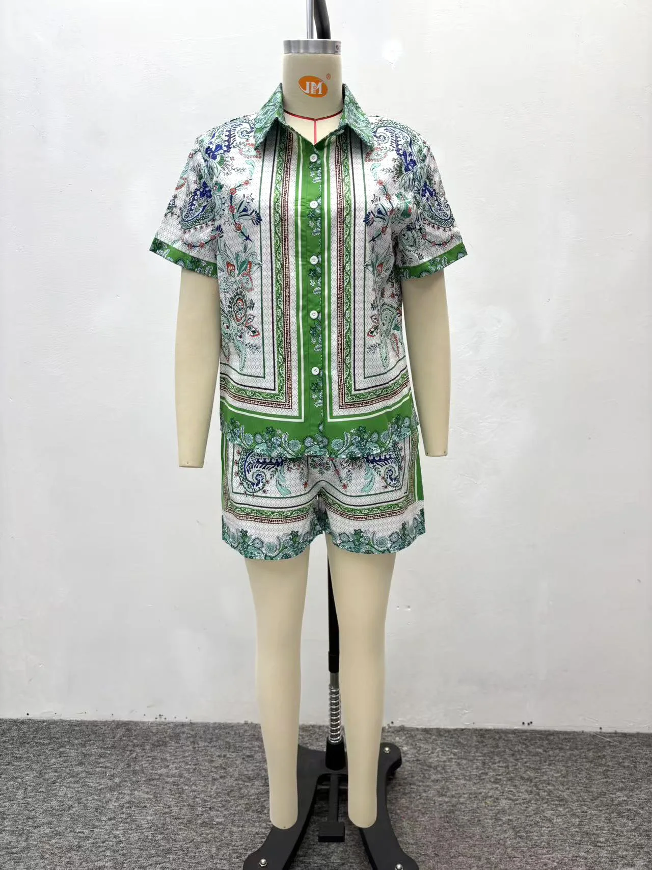 GX6851A Fashion Summer Sexy Clothing Women Street Wear Short Sleeve Print Shirt and Shorts Matching Outfit 2 Piece Set