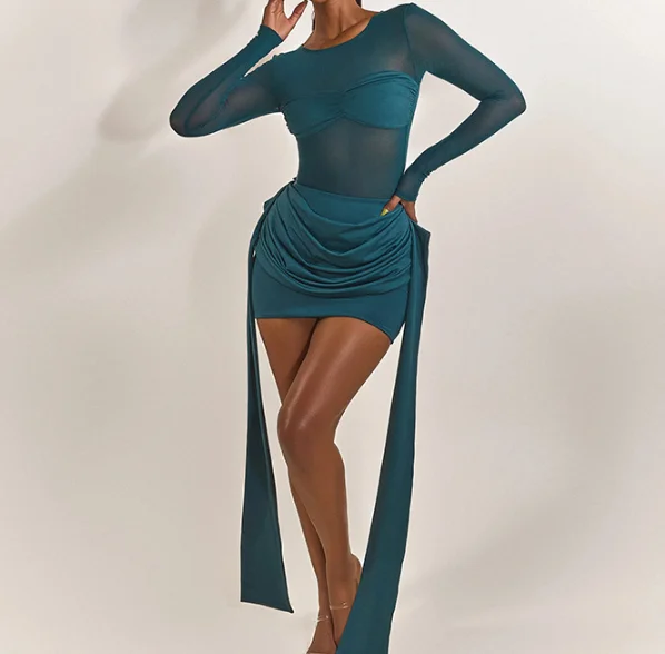 GX25246 Fashion 2026 Fall Clothing Boutique Long Mesh Sleeve Sexy Party Mini Dress Elegant O-neck Mini Dresses