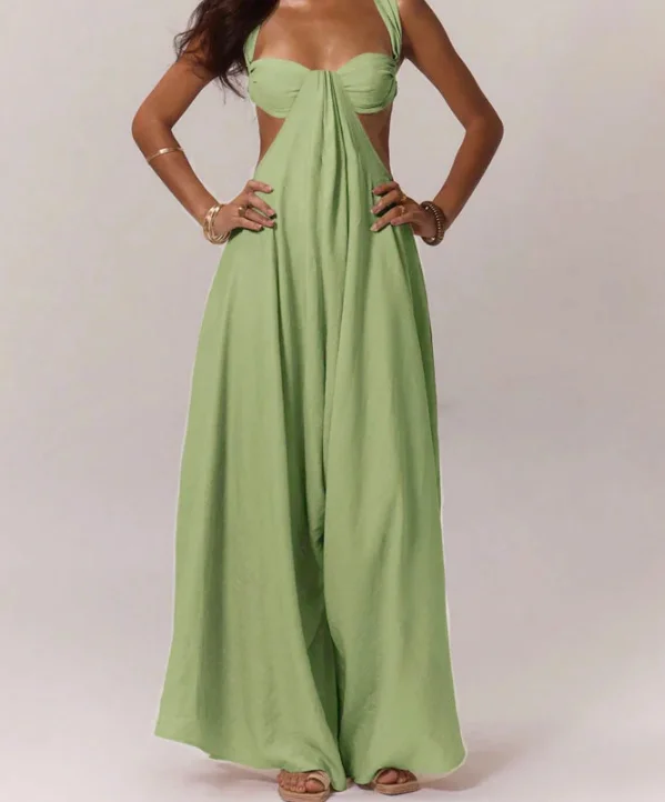 GX1133 Boutique 2026 Summer Lady Street Wear One Piece Women Cut-Out Sleeveless Backless Elegant Sexy Wide Leg Jumpsuit