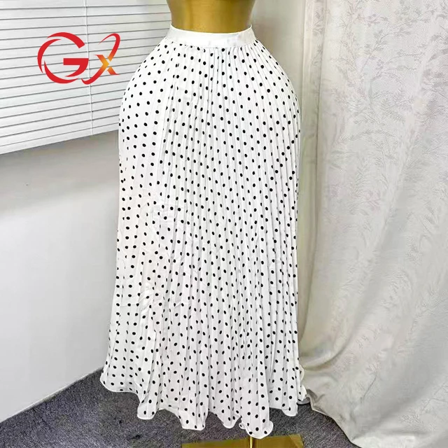 GX9361 Fashion Summer High Waist Unique Clothing Casual Ladies Long Elegant Wave Point Printed Maxi Women Skirt