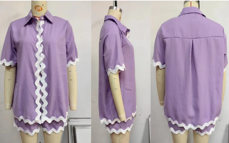 GX88156 Fashion Summer Casual Street Wear Women Clothing Vendor Short Sleeve Shirt and Shorts 2 Pieces Set