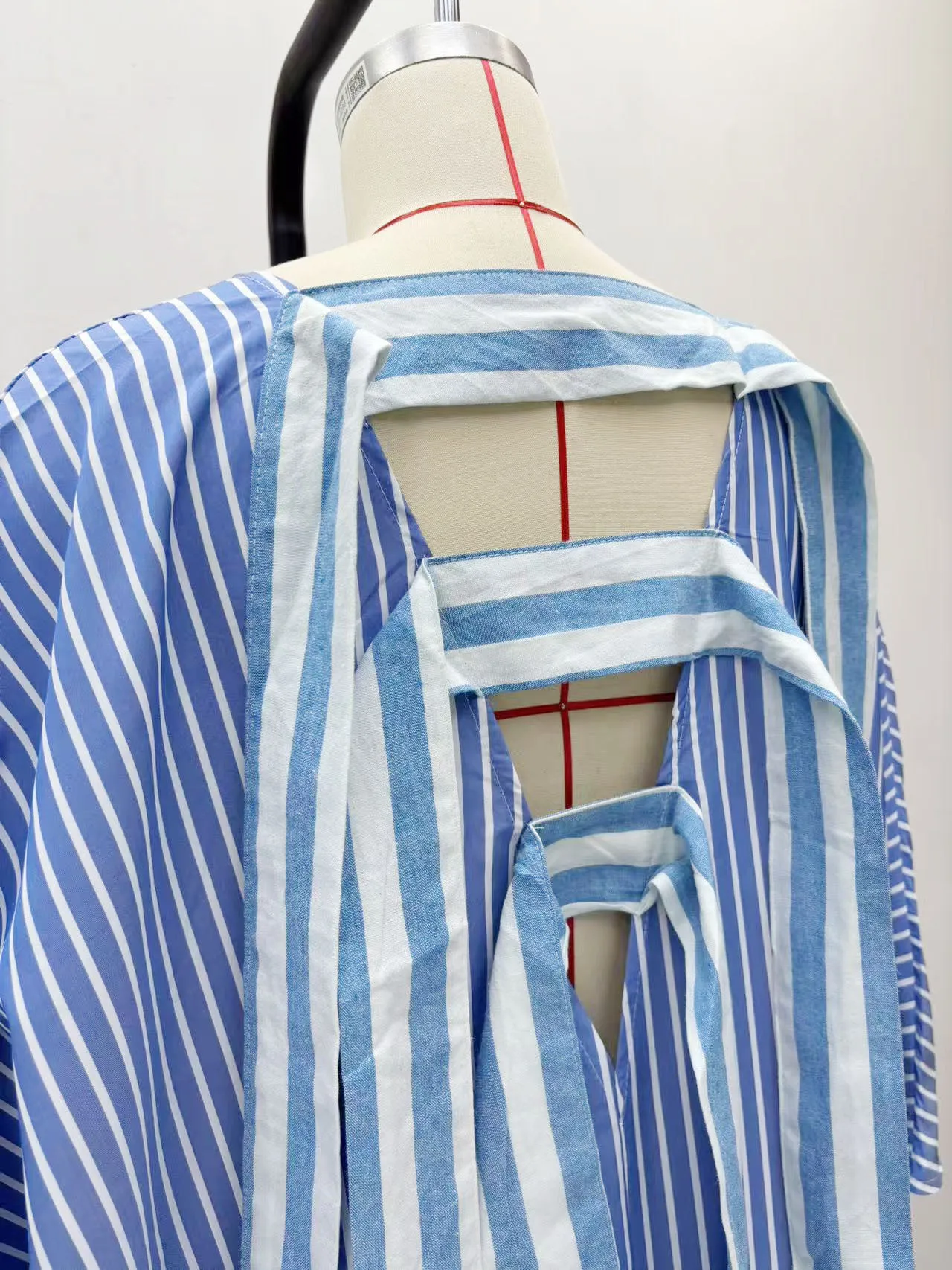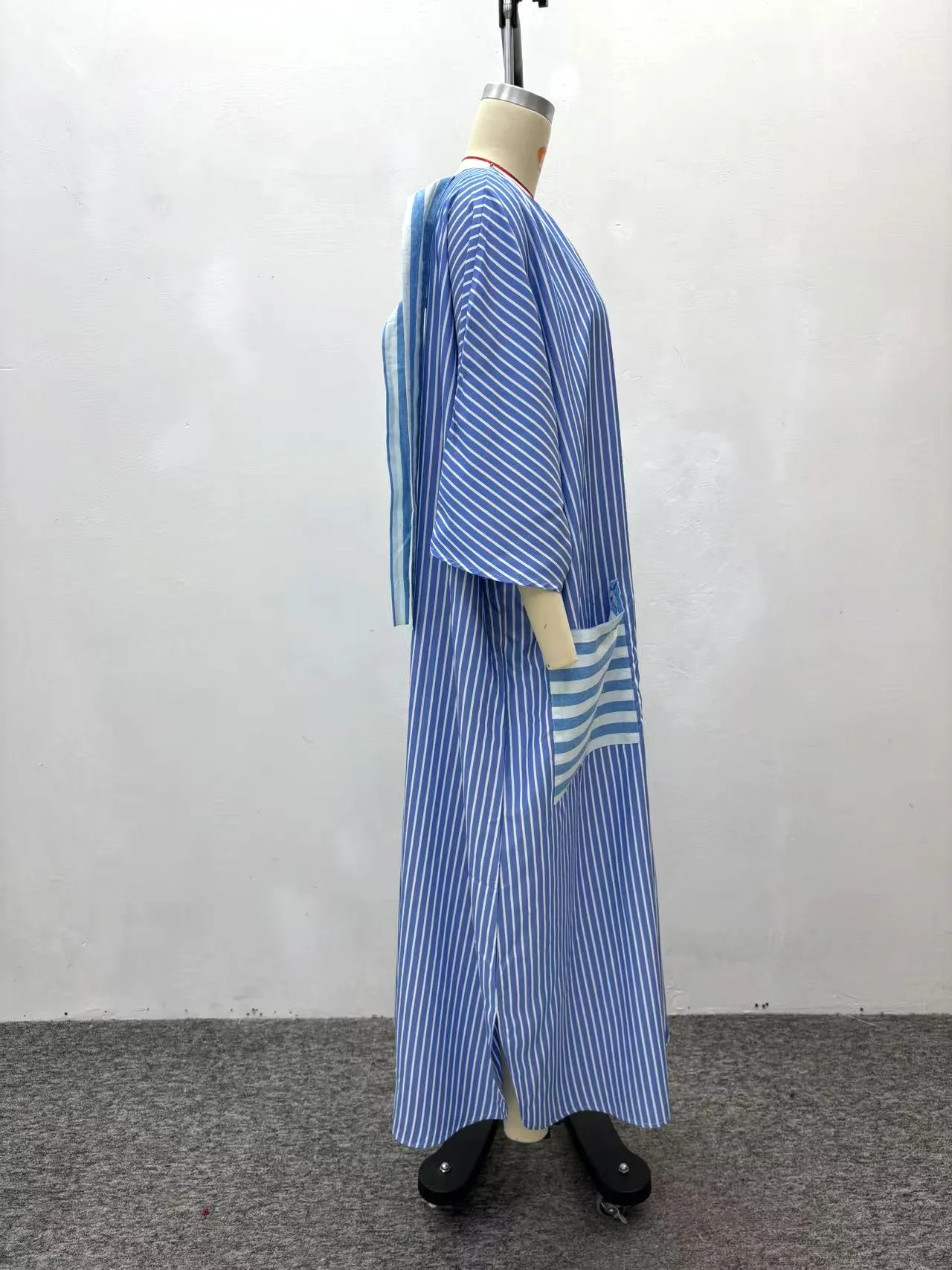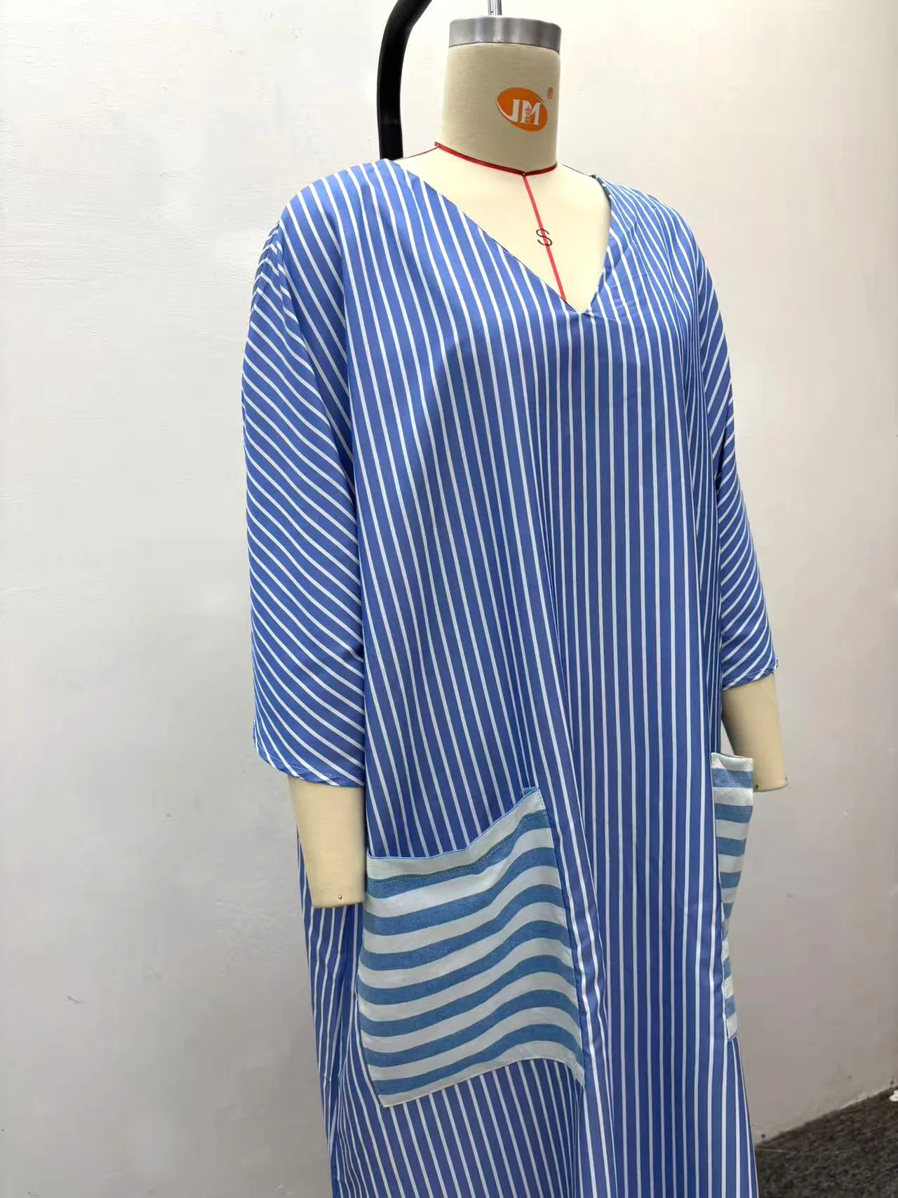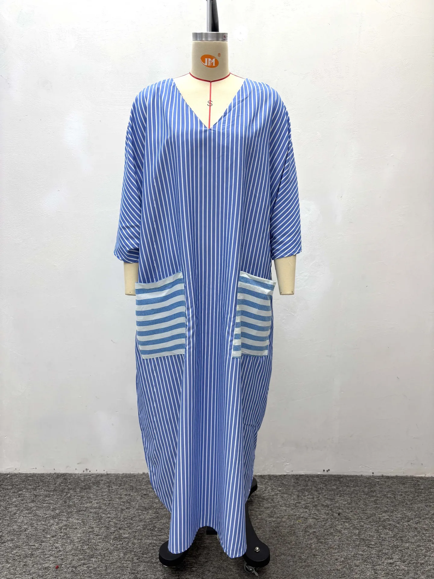 GX7339A Good Quality Fashion 2026 Fall Women Clothing Vendor Long Sleeve V-neck Maxi Dress Sexy Stripped Printed Loose Dresses