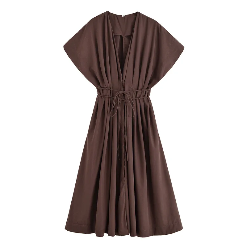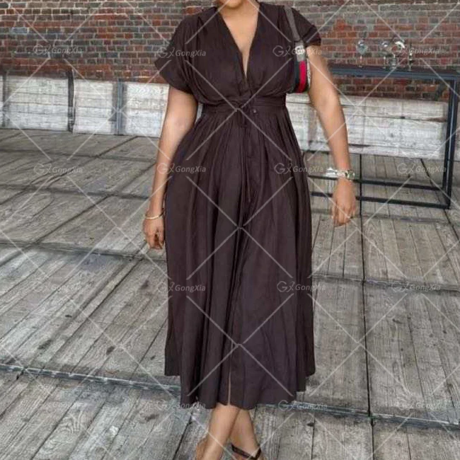 GX5260 Boutique 2026 Fashion Clothing Boutique Women Short Sleeve V-neck Maxi Dress Elegant Casual Lace-up Long Dresses