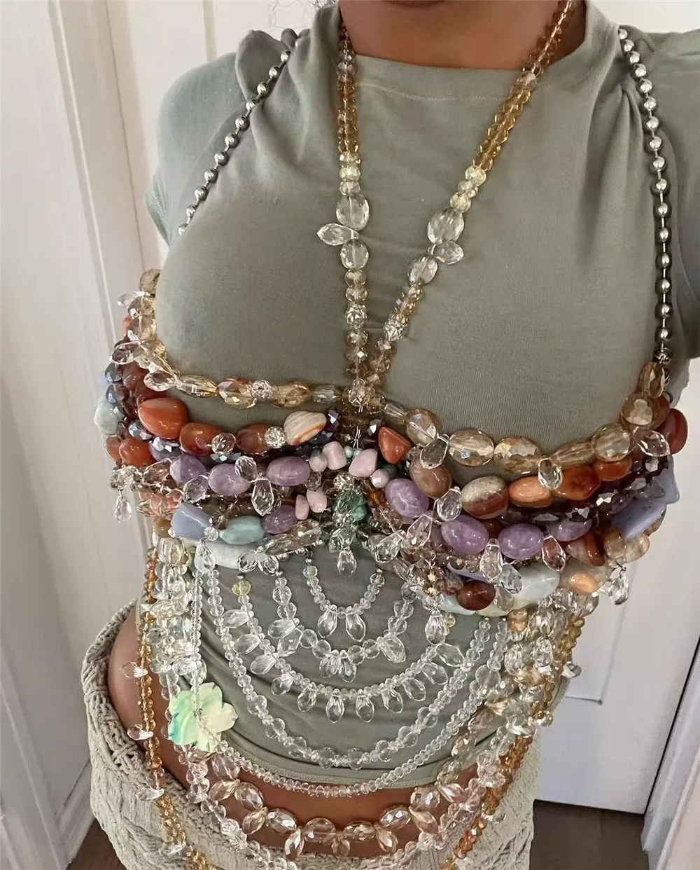 GX5293 Fashion Ladies Tank Top Sexy Elegant Tight Fit Sleeveless Pearl Unique Halter Cropped Tops Women