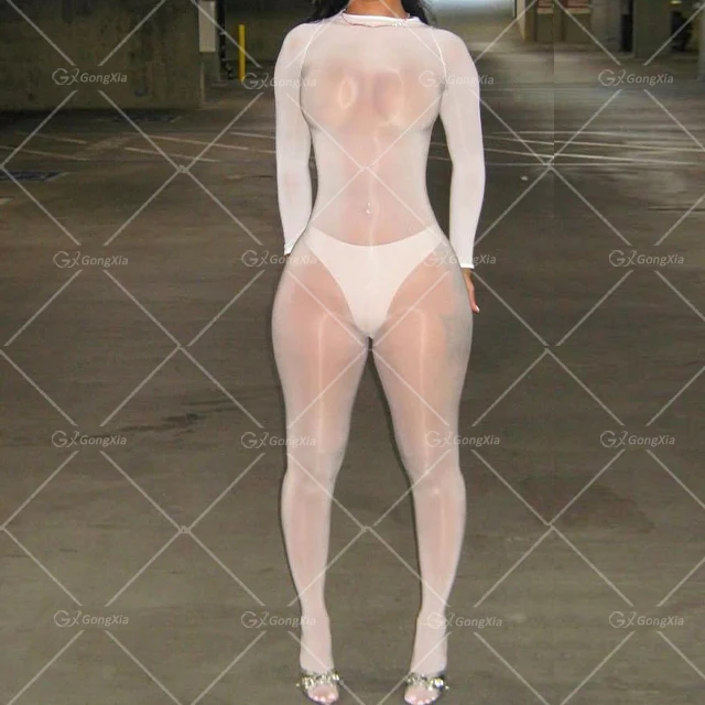 GX25009 Fashion 2026 Clothes Boutique Sexy Lingerie Night Club Wear Women Long Sleeve See Through One Piece Jumpsuit