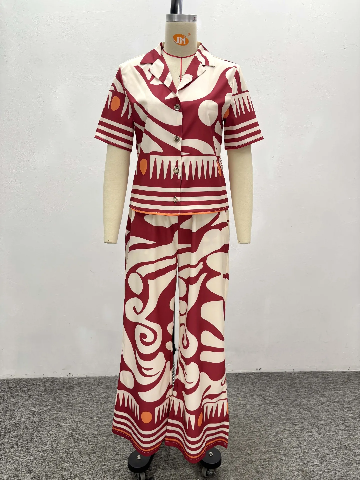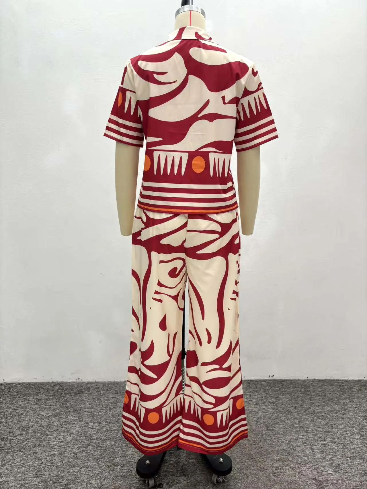 GX6749A Boutique Fashion 2026 Fall Women Clothing Boutique Street Wear Short Sleeve Printed V-neck Tops and Pant 2 Piece Set