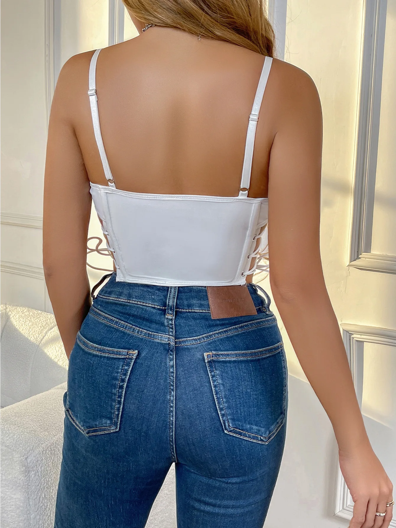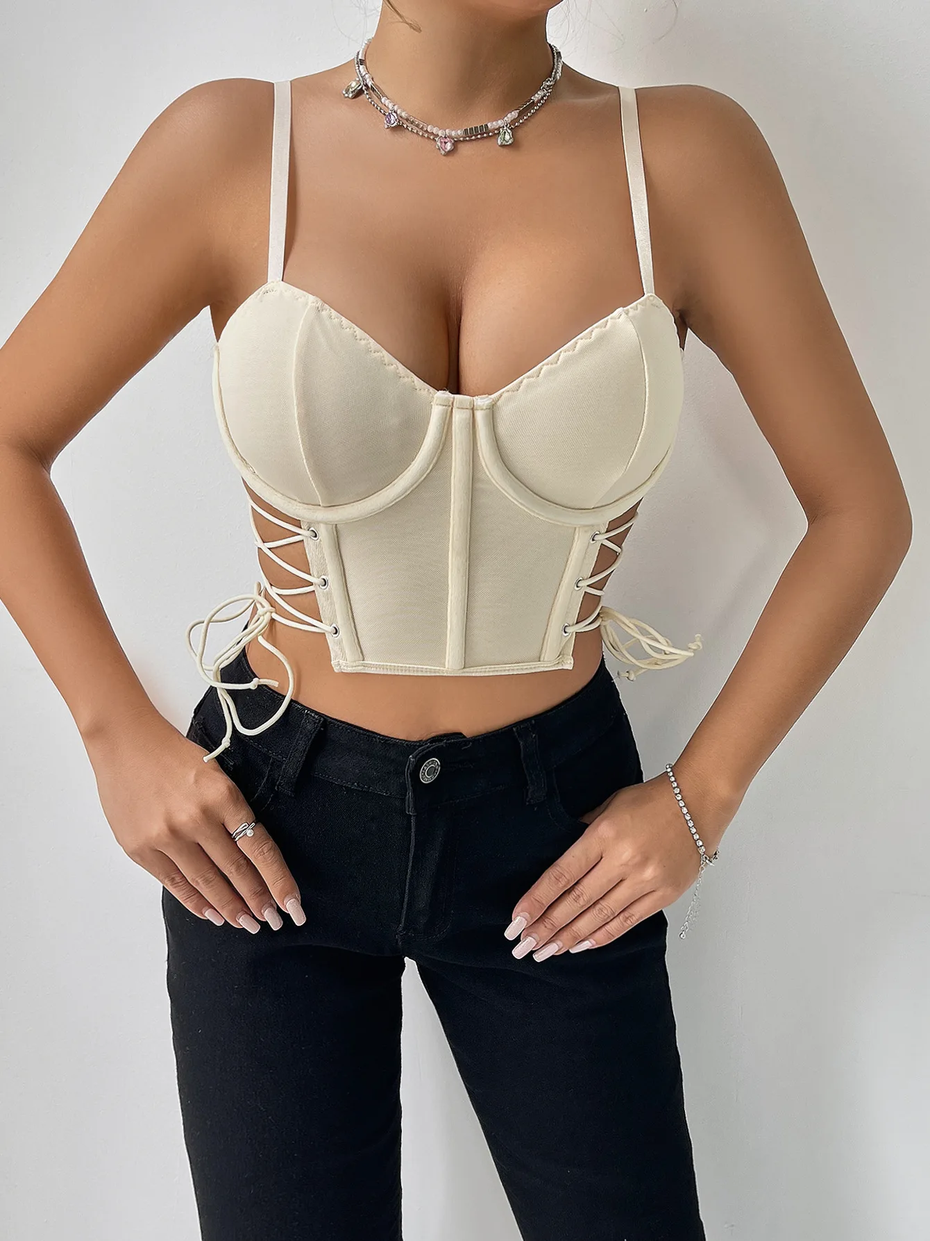 GX1310A Fashion Summer Ladies Tank Top Sexy Elegant Tight Fit Sleeveless Side Lace-up Unique Cropped Tops Women