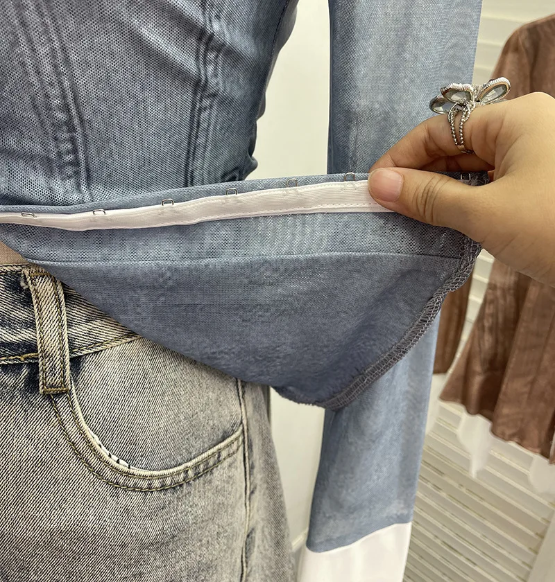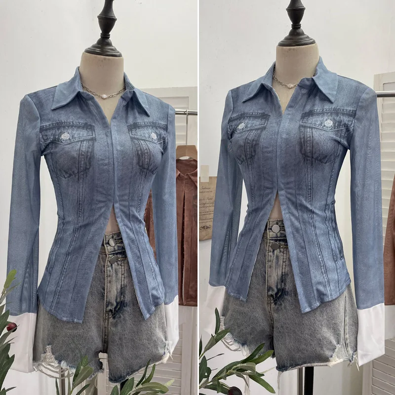 GX1293 Fashion 2026 Fall Women's Clothing Boutique Long Sleeve Turn Down V-Neck Printed Tops Sexy Women Blouse Mesh Shirt