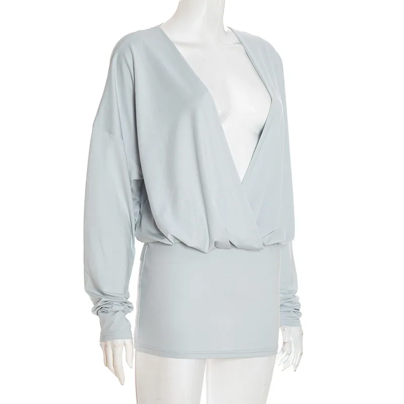 GX25345 Fashion 2026 Autumn Women's Clothing Vendor Sexy Street Wear Long Sleeve Deep V-Neck Sexy Mini Dress