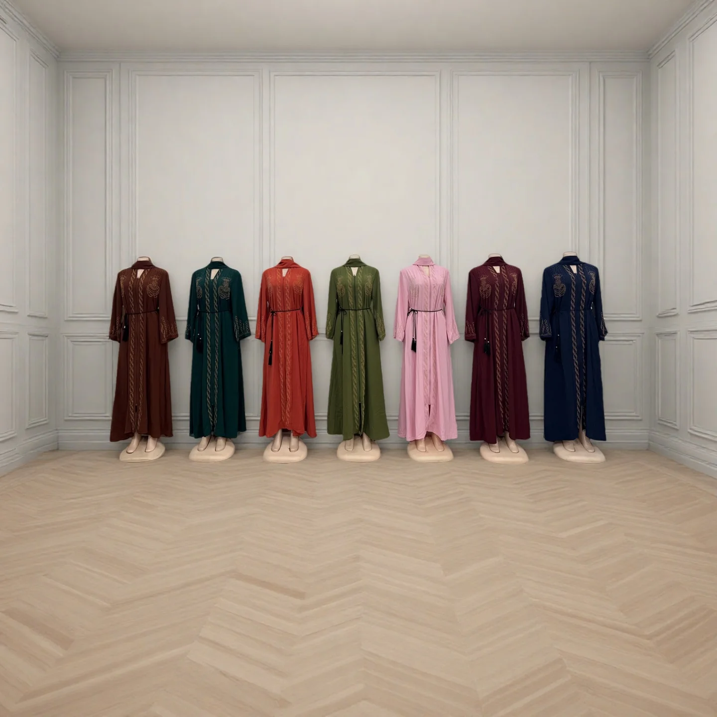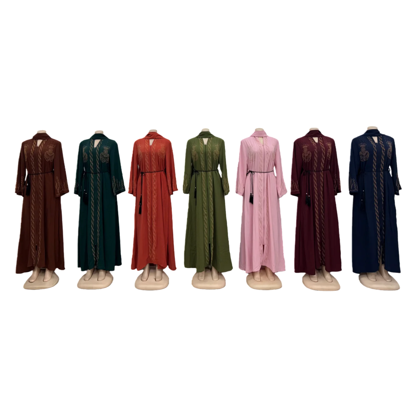 New Wholesale Middle Eastern Women Muslim Robe Printed Casual Fashion V-neck Dress