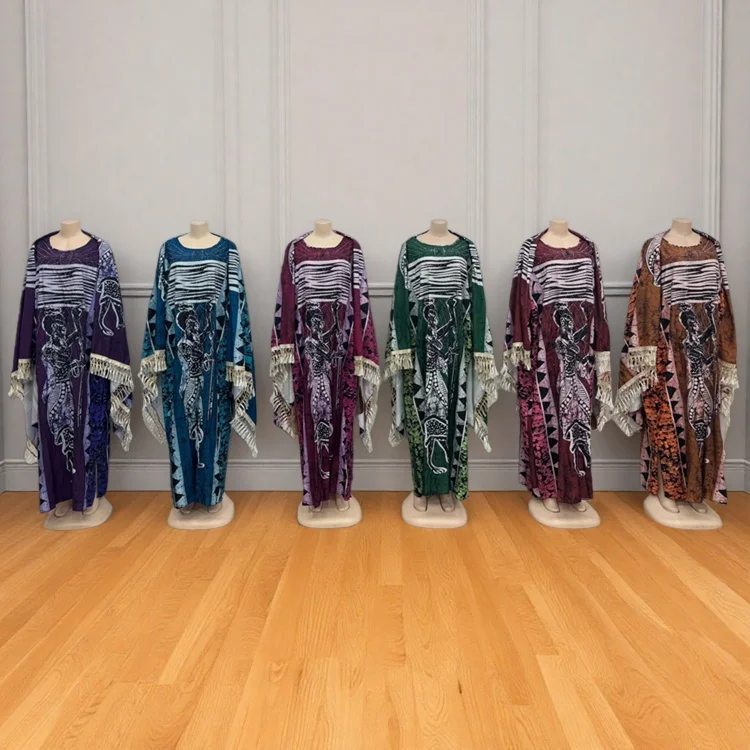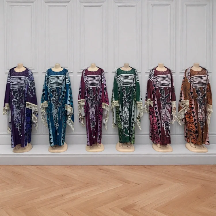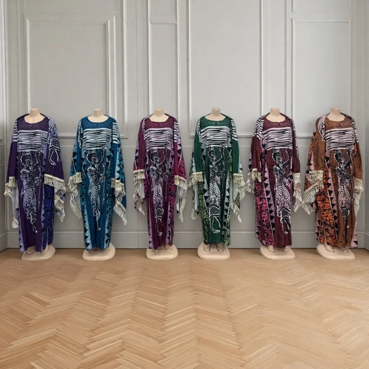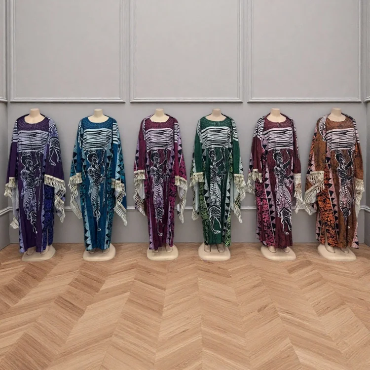 New Wholesale Fashion Printed Summer Loose Casual Women Plus Size Muslim Robe Dress