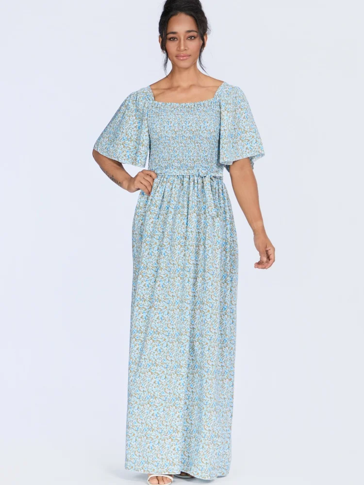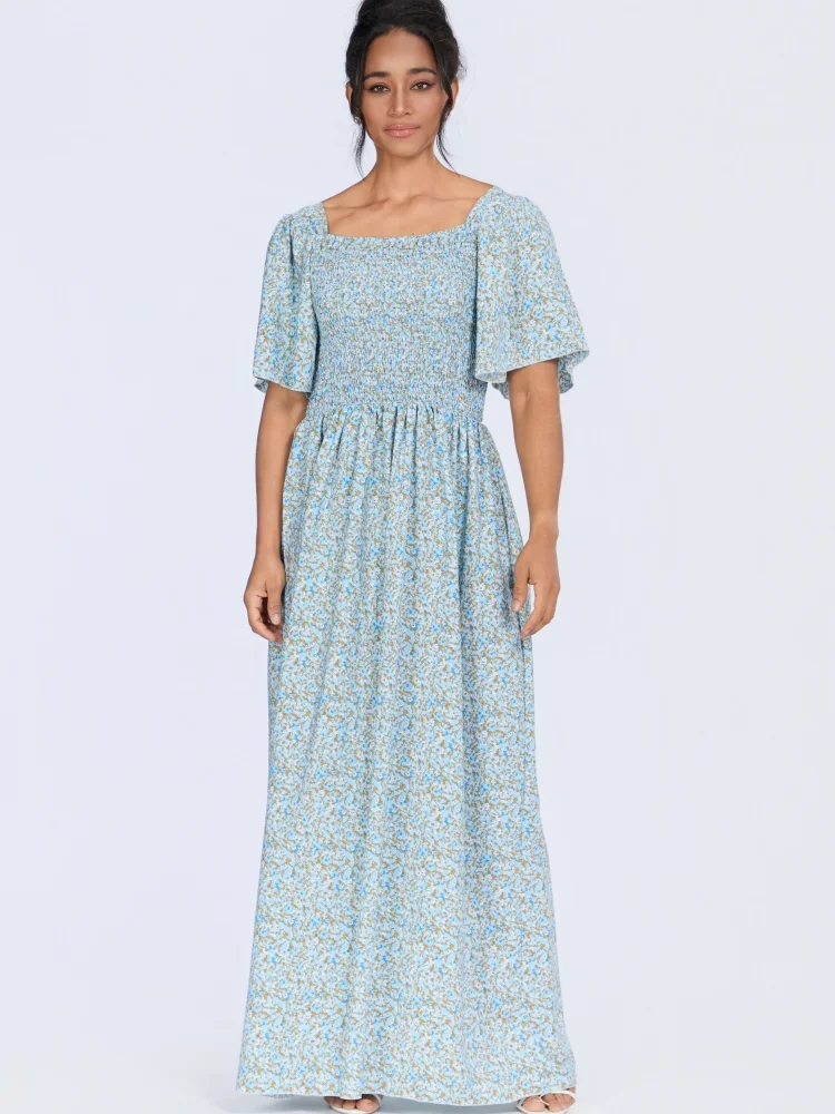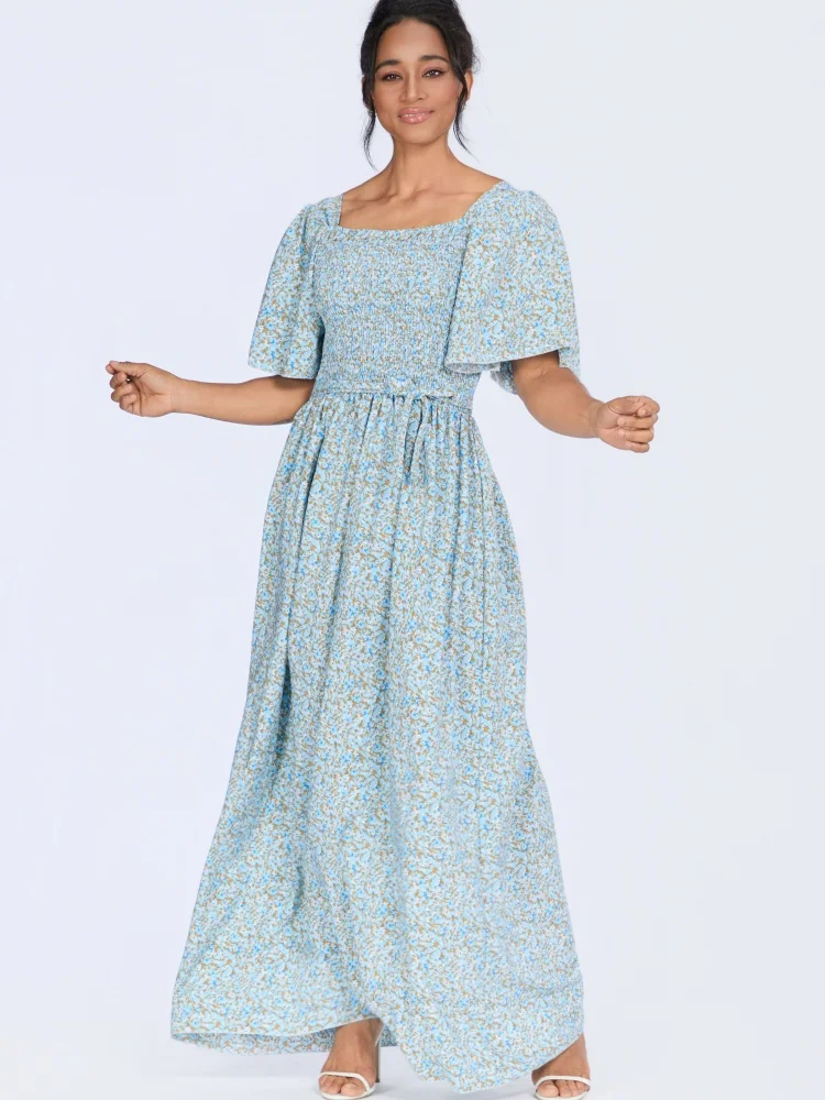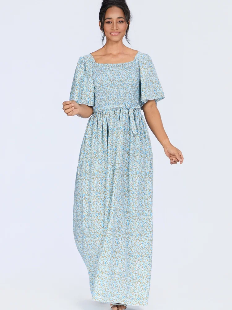 Wholesale Summer square Collar Short Sleeve Printed Women Retro Floral Fashion Breathable Dress