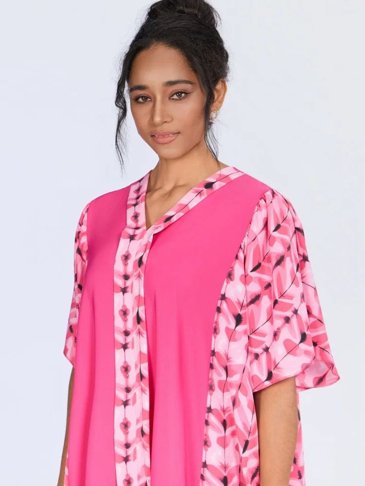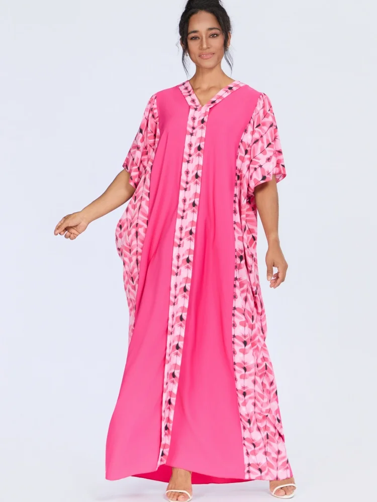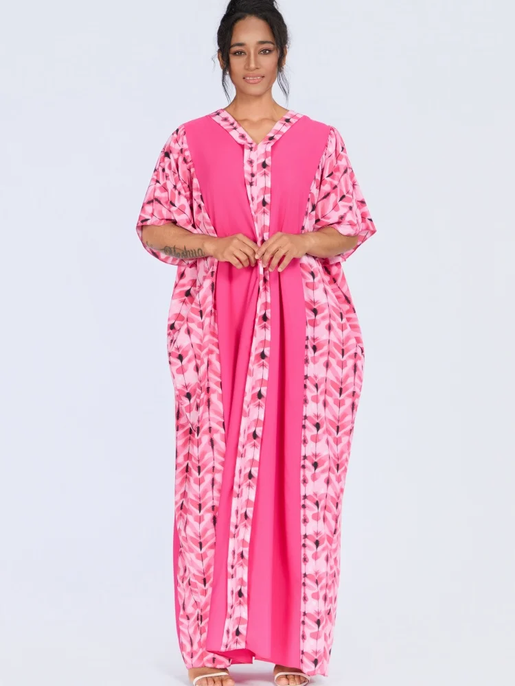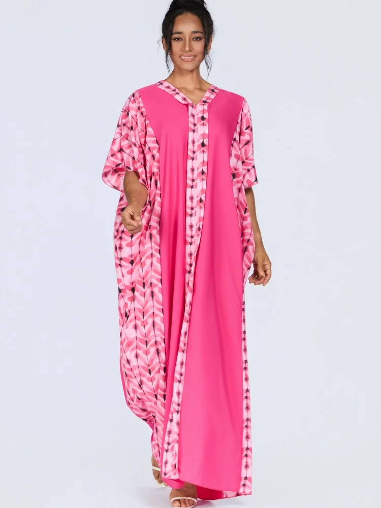 New Wholesale Fashion Loose Elegant Summer Muslim Robe Printed Women V-Neck Dress