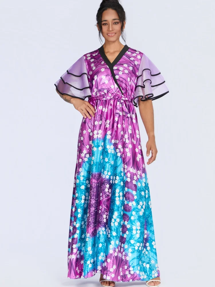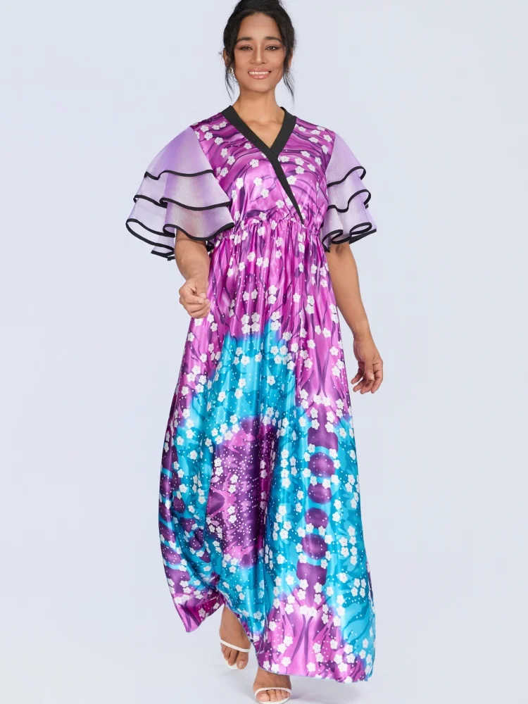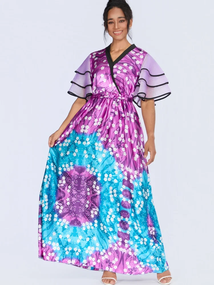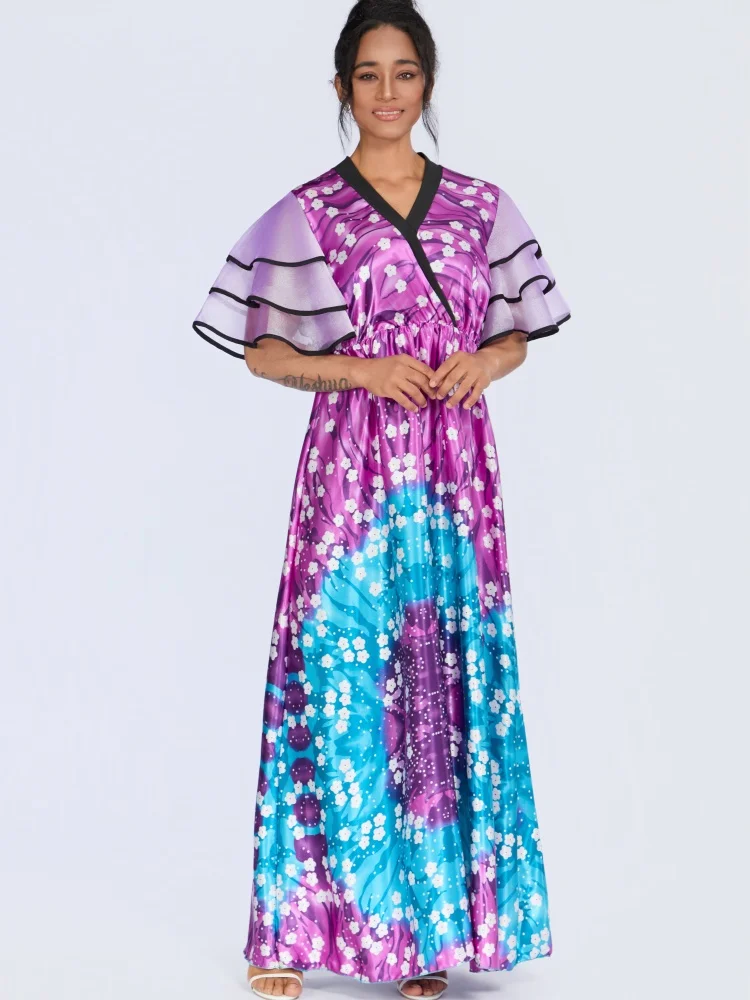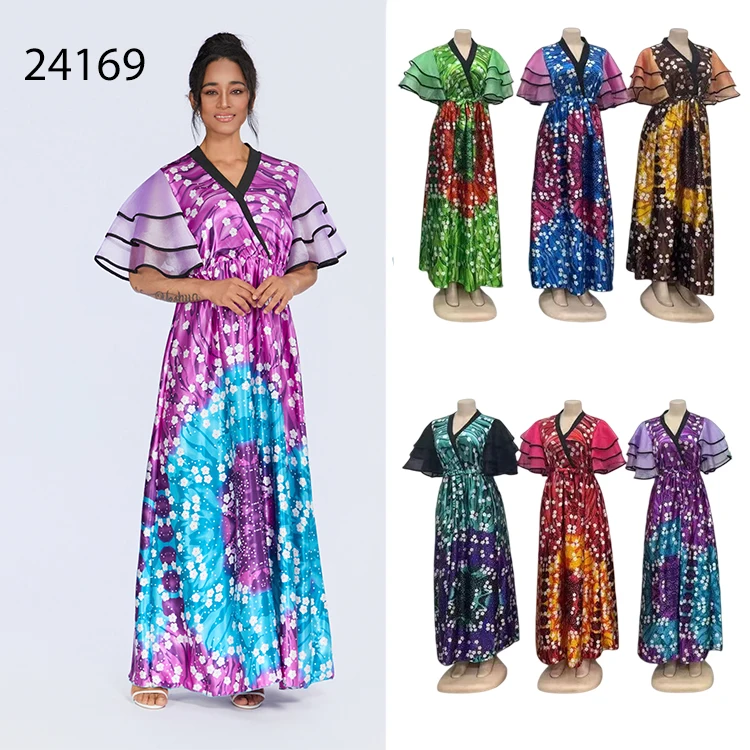 New Wholesale Summer Ladies Fashion Casual V-neck Short Sleeve Printed Elegant Dress