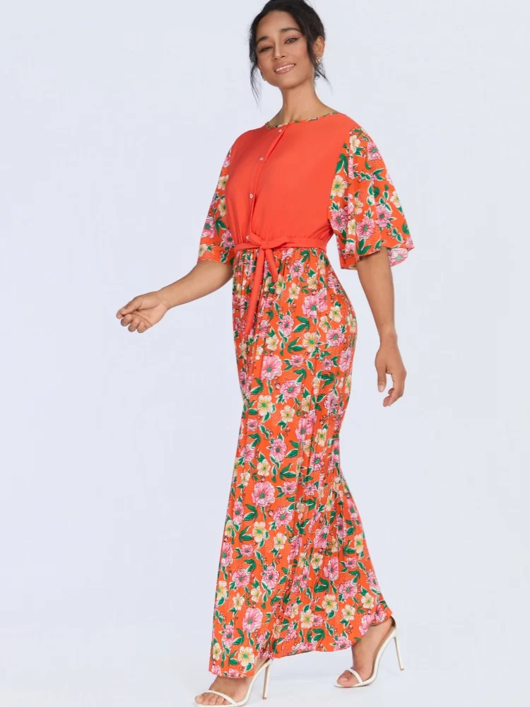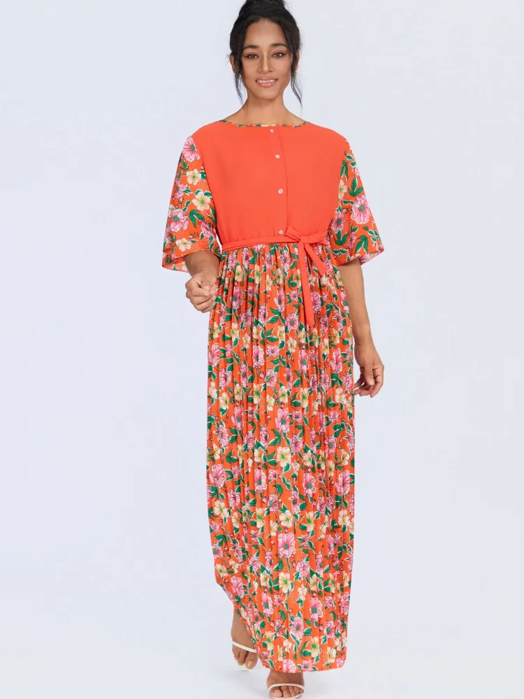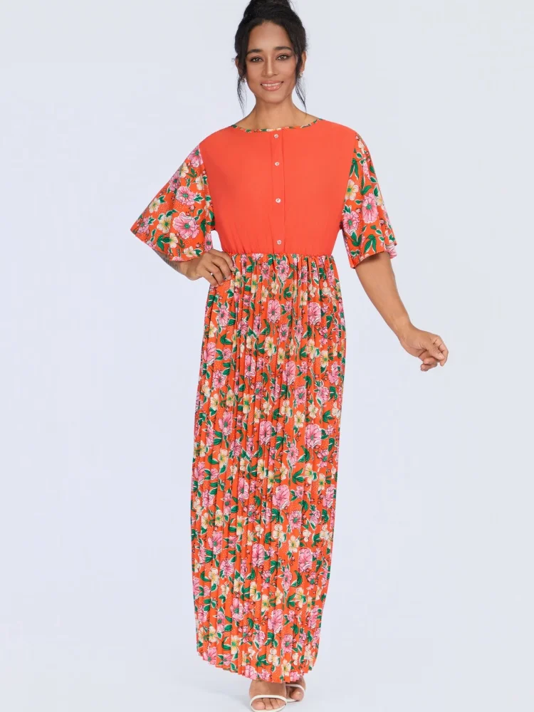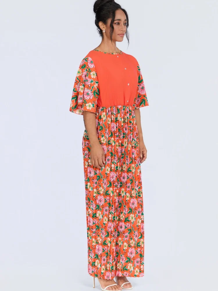 New Style Wholesale Summer Fashion Casual Printed Floral Loose Women's Crewneck Short Sleeve Dress