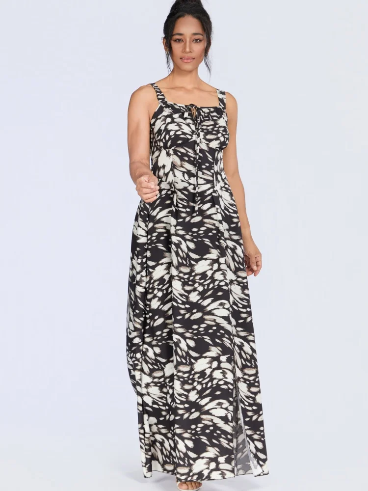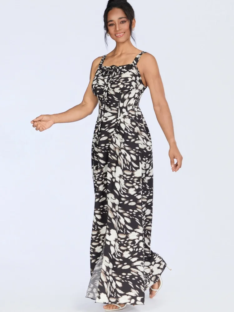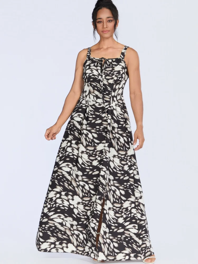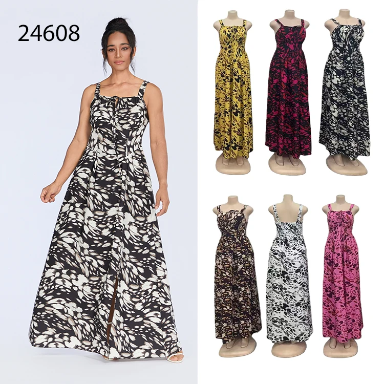 New Wholesale Ladies Elegant Fashion Summer Casual Printed Strap Backless Split Dress