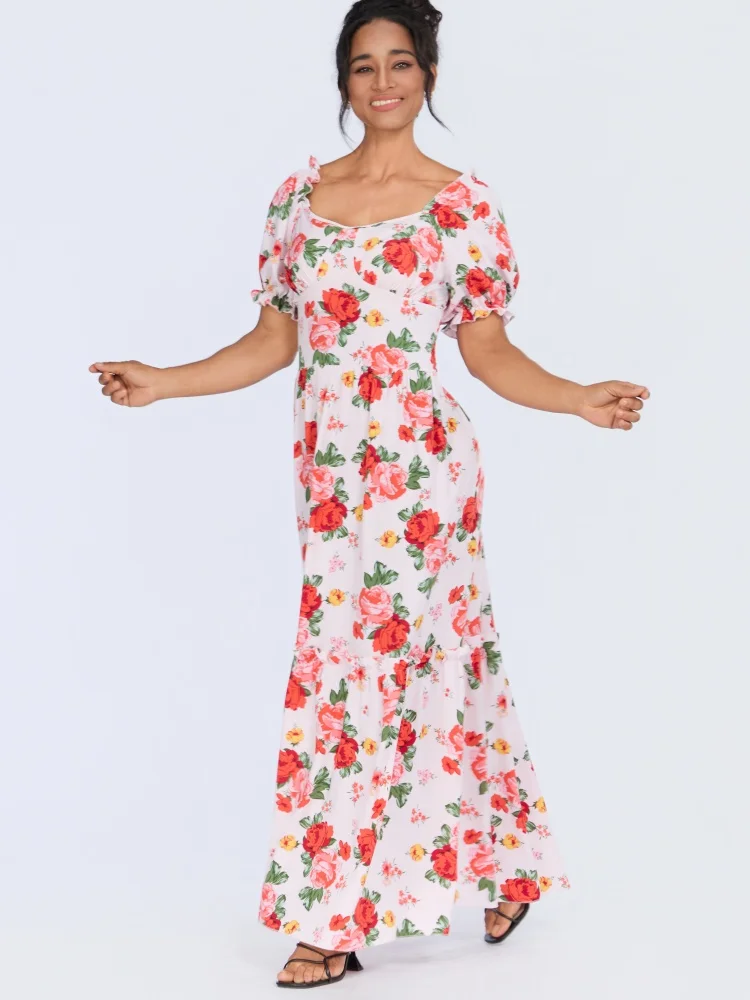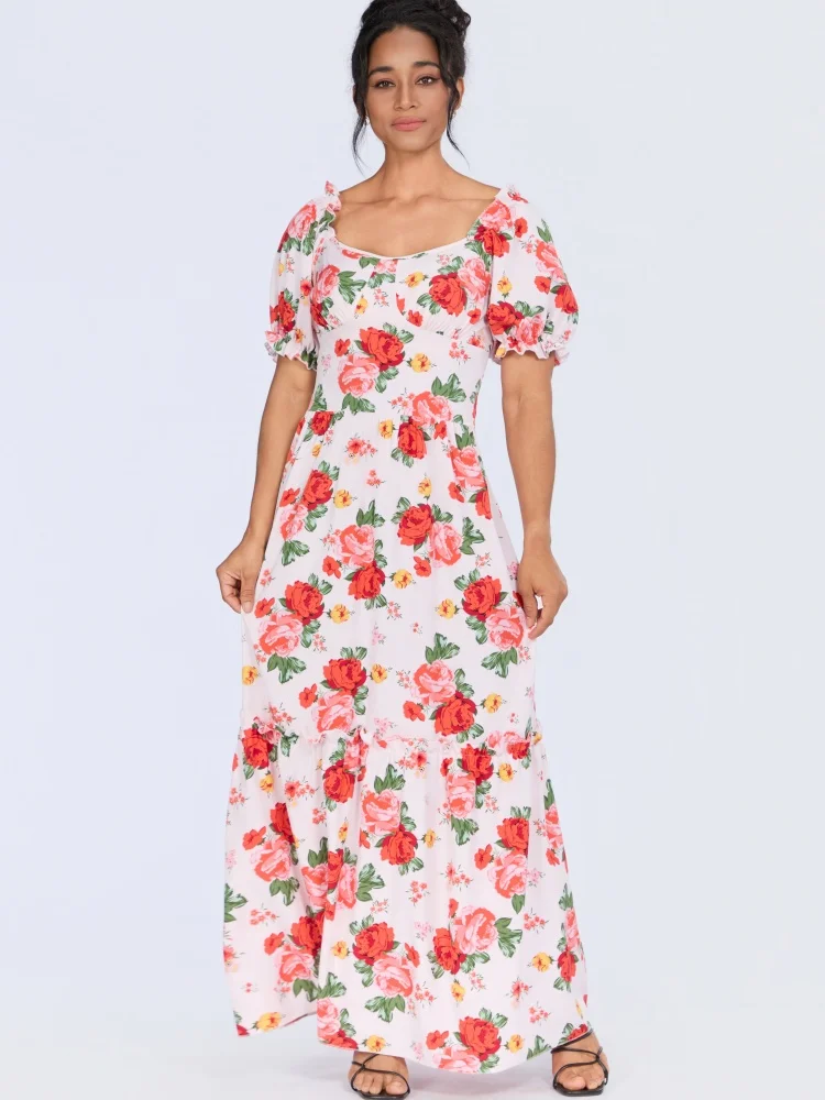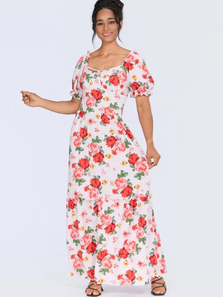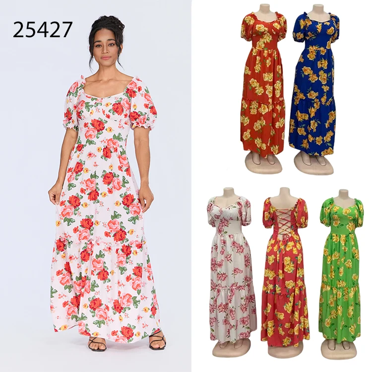 Wholesale New Summer Women Printed Short Sleeve square Collar Slim Backless Fashion Dress