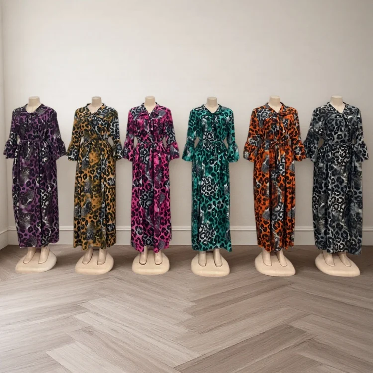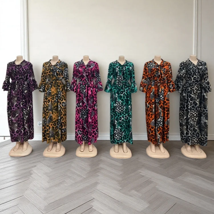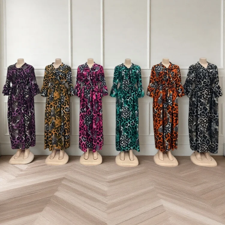 Wholesale New Autumn Vintage Collar Belted Slim-fit Casual Long Sleeve Printed Dress