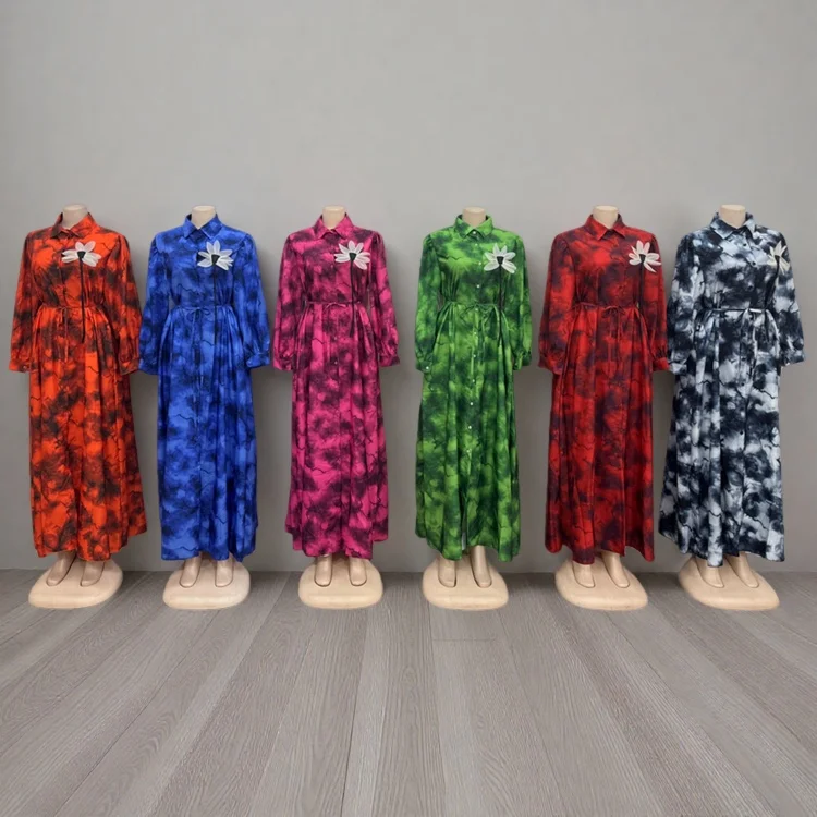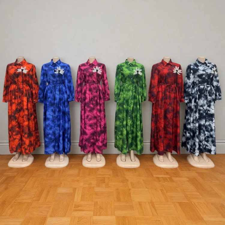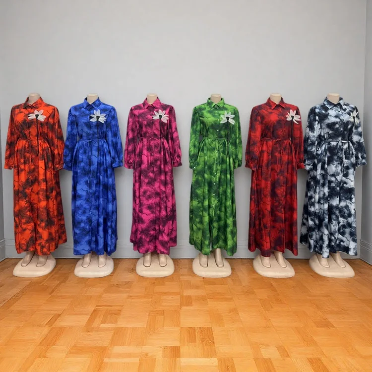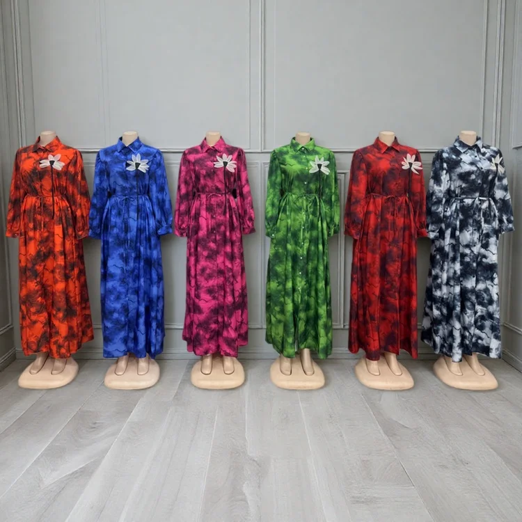 Wholesale New Women Summer Fashion Printed Long Sleeve Loose Button Lapel Dress