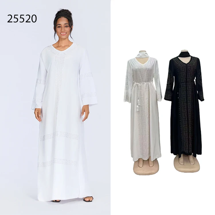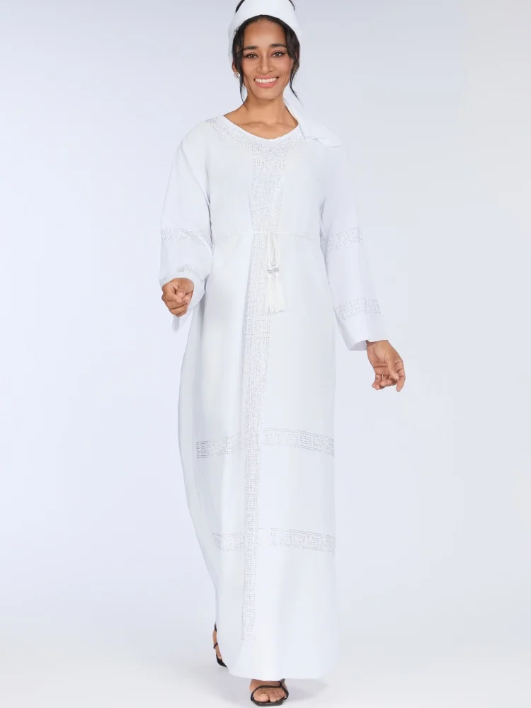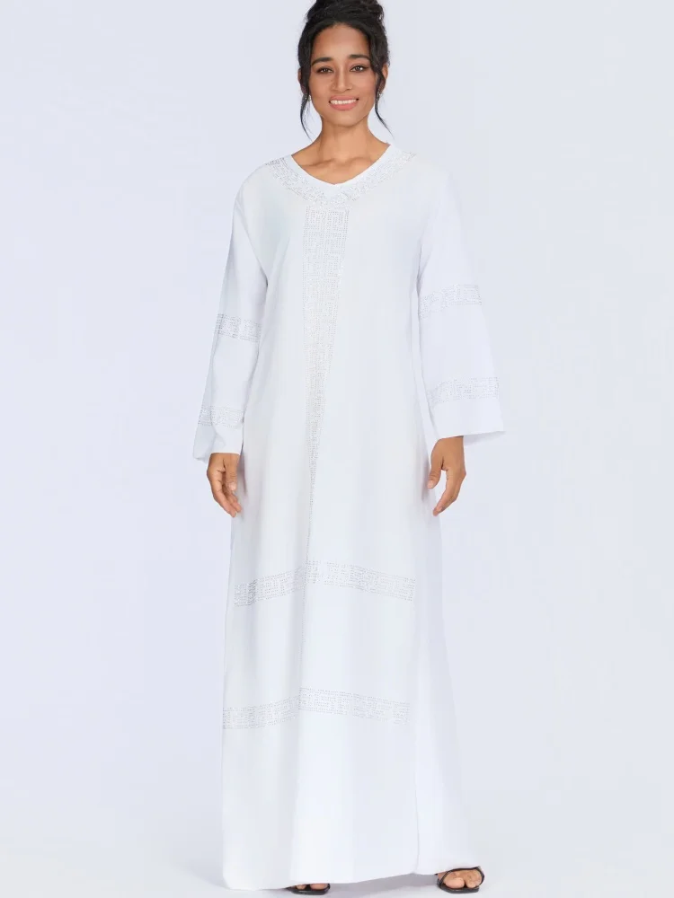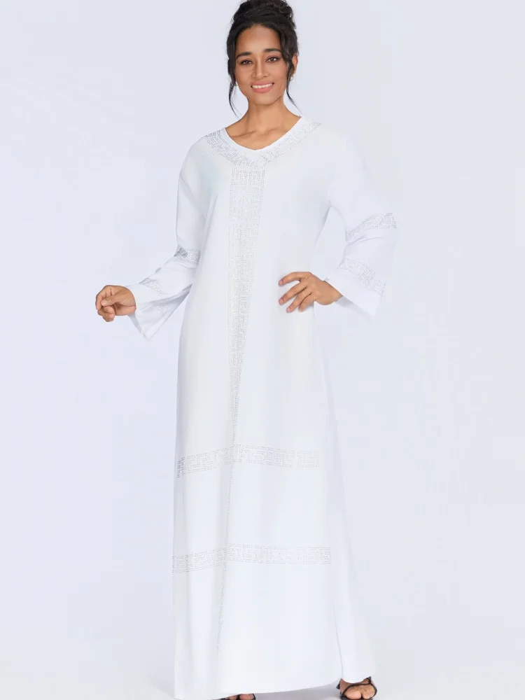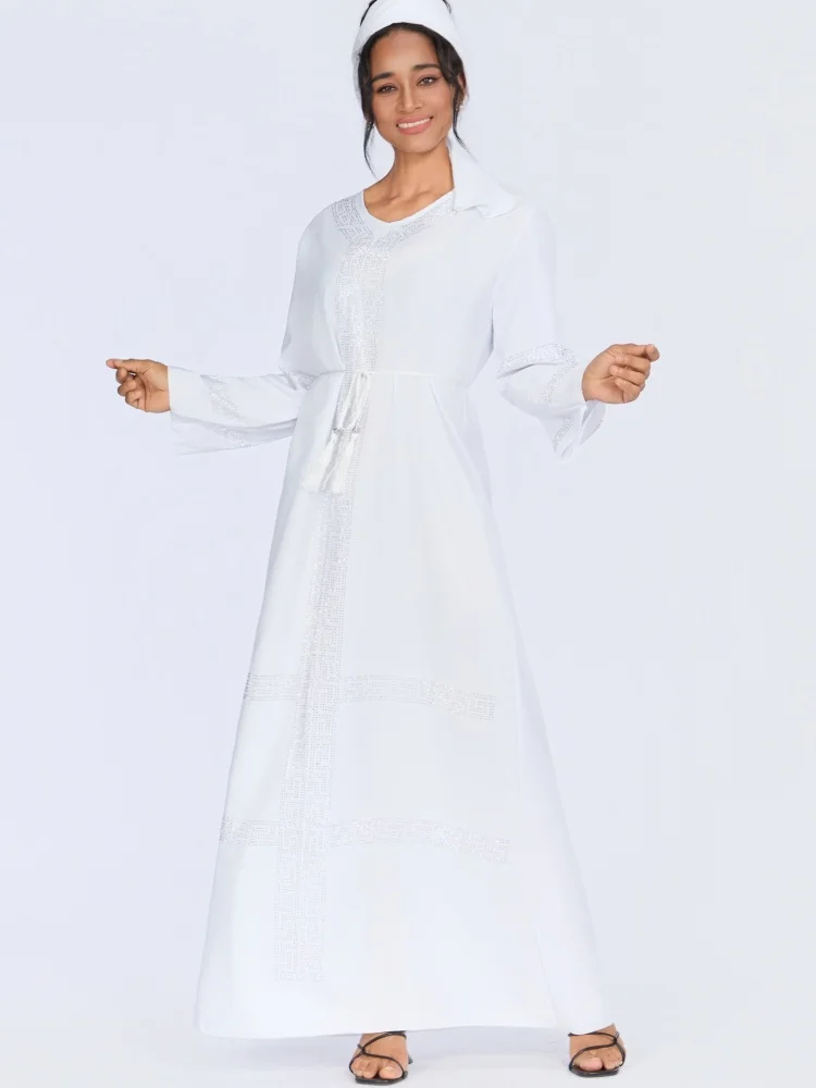 Wholesale New Middle Eastern Muslim Rhinestone Robe Elegant V-neck Long Sleeve Dress