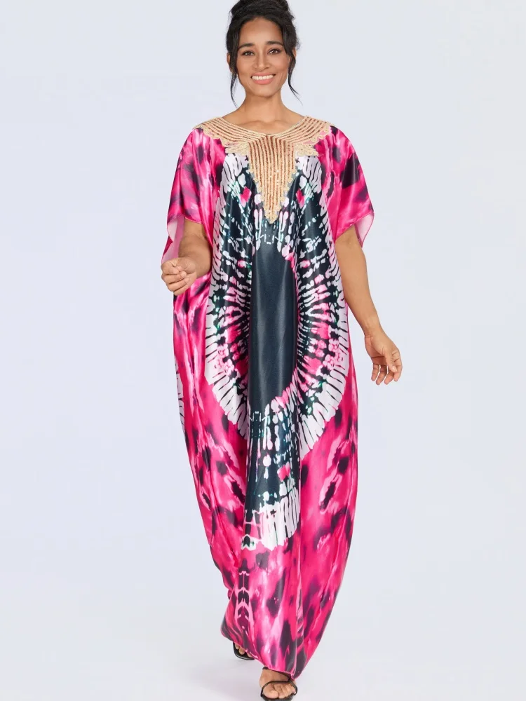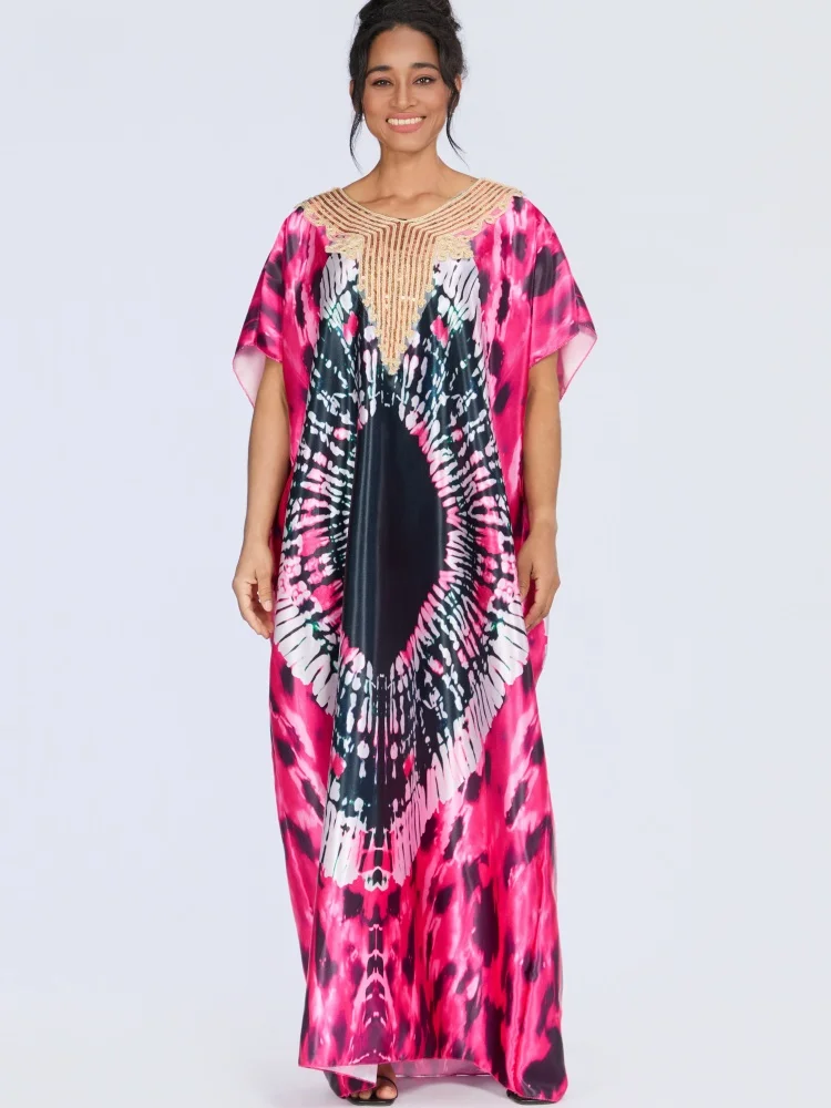 Wholesale New Fashion Summer Dyeing Casual Loose Printed V-Neck Short Sleeve Breathable Dress