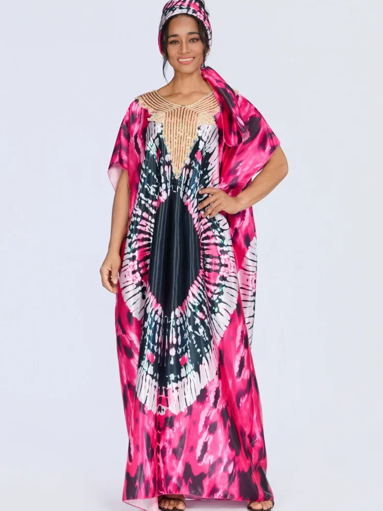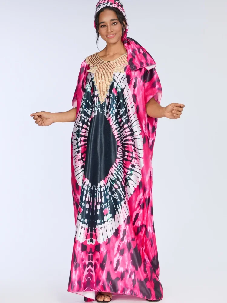 ZYHT 73963 Matte Satin Printed Geometric Pattern Maxi Women Asymmetric One Shoulder Ruched Hem Women Dress