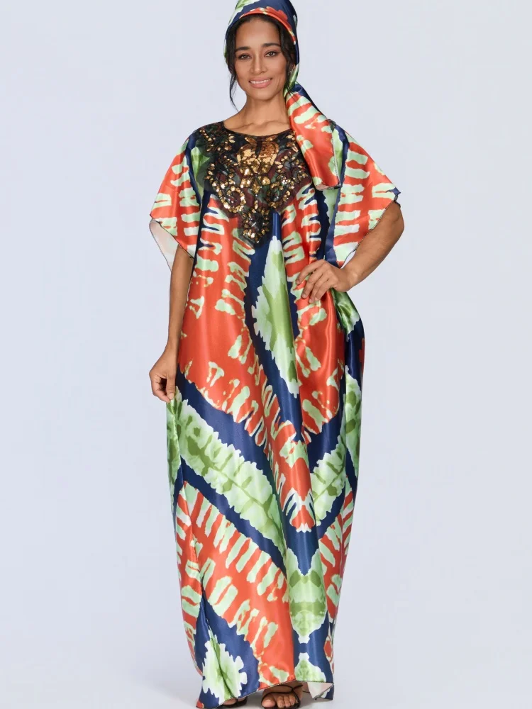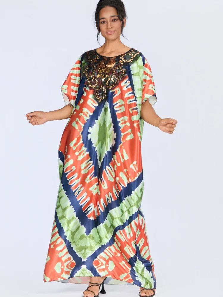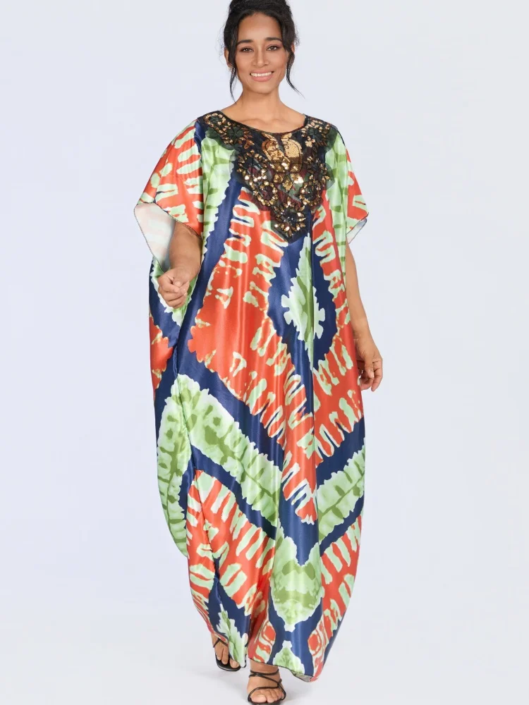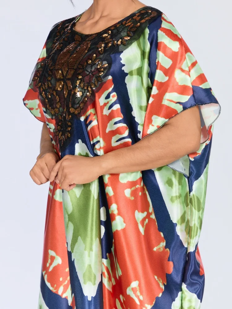 Wholesale New Middle Eastern Muslim Robe Short Sleeve Sequin Round Neck Elegant Dress