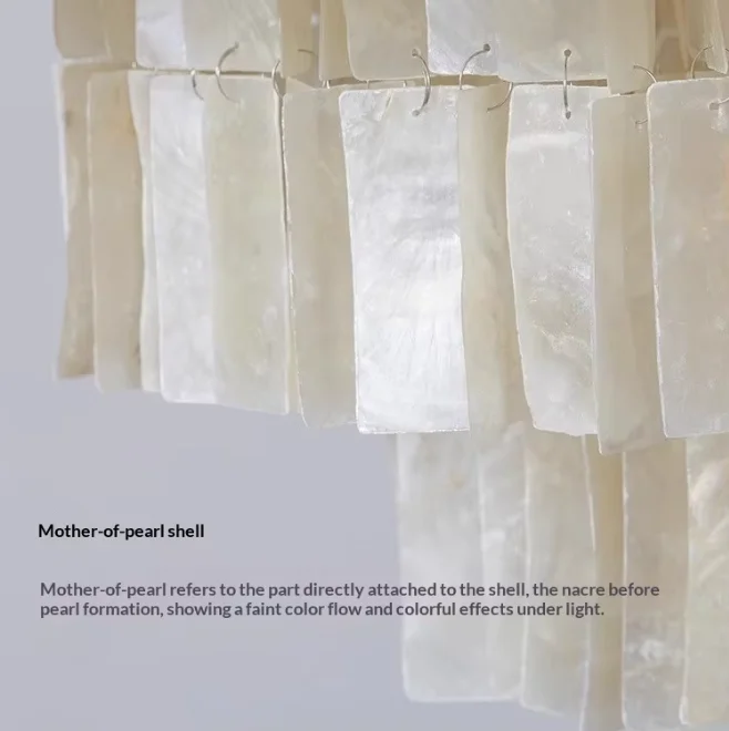 JACKSUN White Natural Sea Shell Iron LED Chandelier Retro E14 Shell Lights 45cm Round Pendant Lamp Living Room Hanging Lights