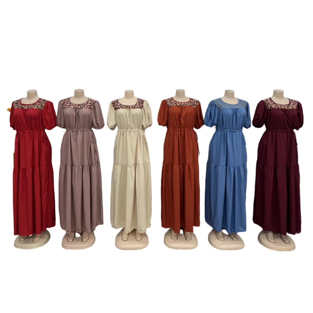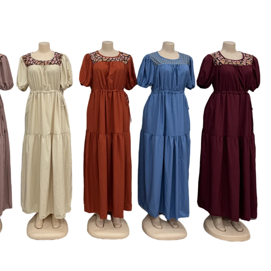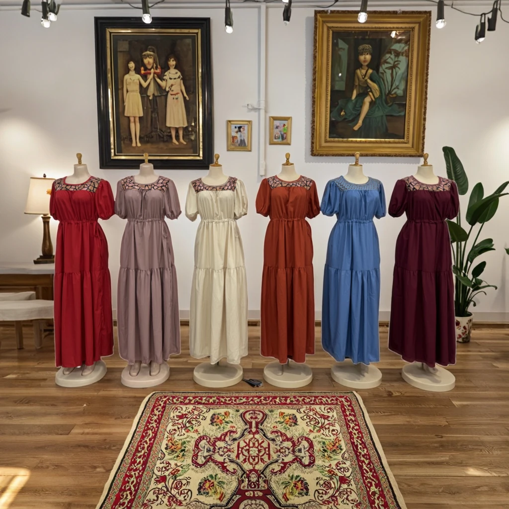2026 Women's Summer Cotton Silk Solid Color Dress Long Style Casual O-Neck Design Factory Wholesale Plain Dyed Techniques