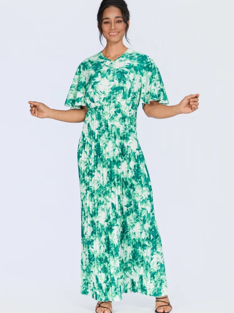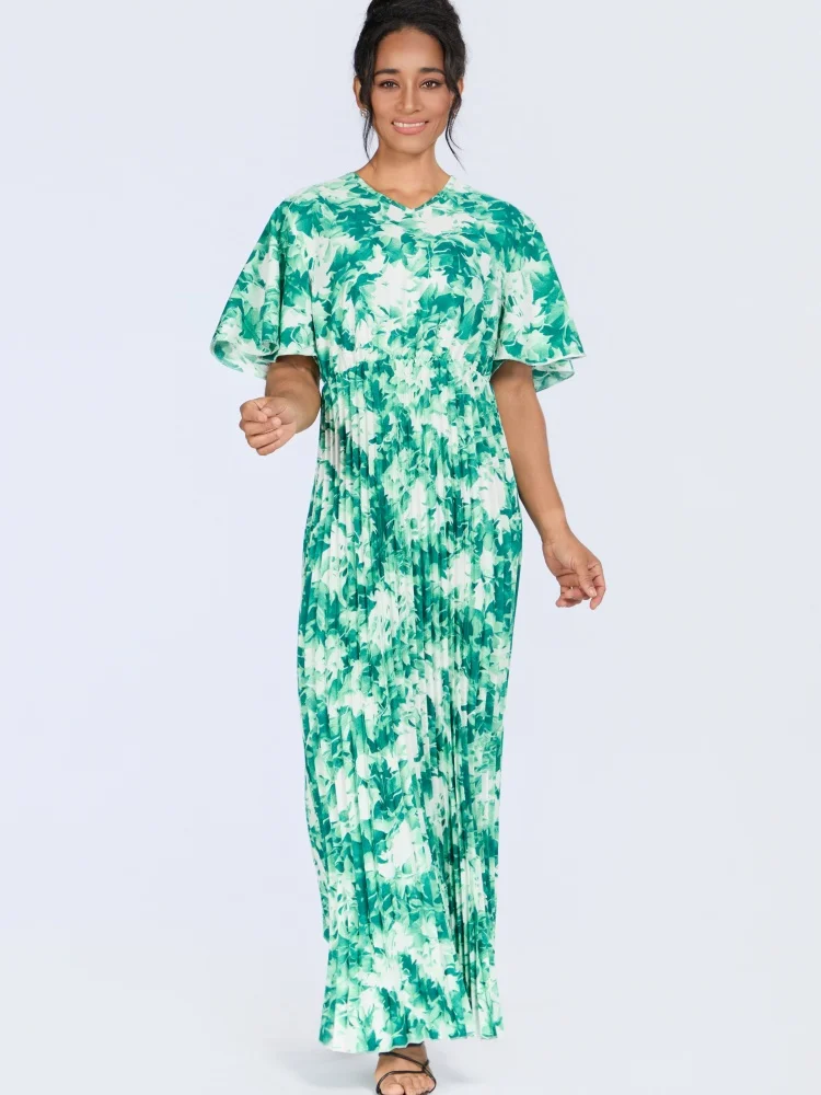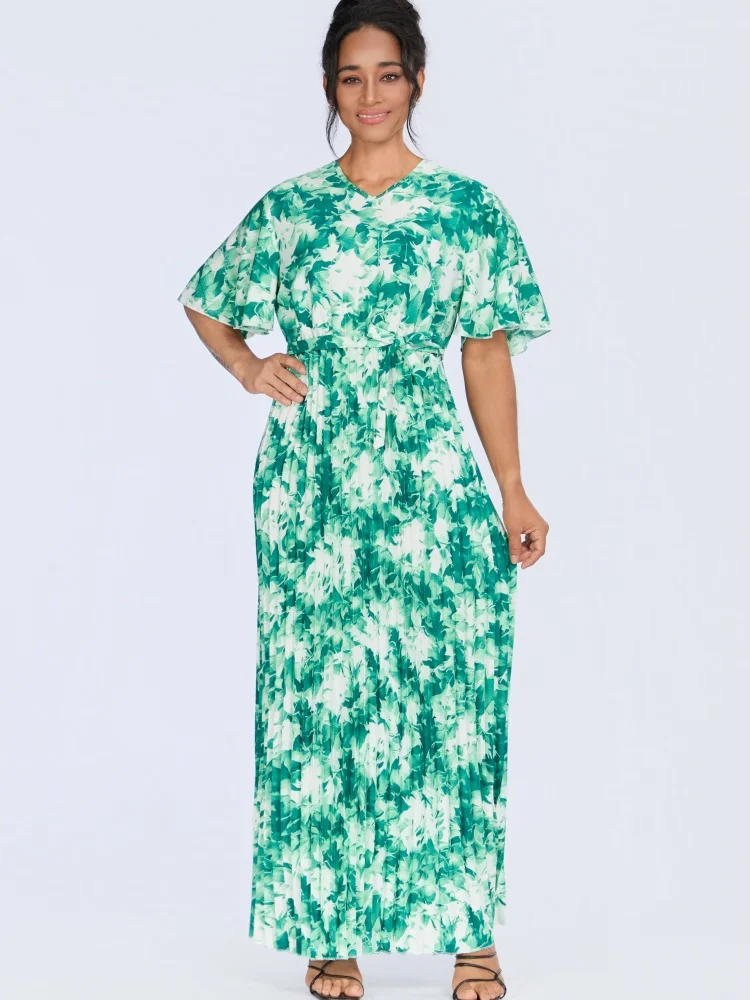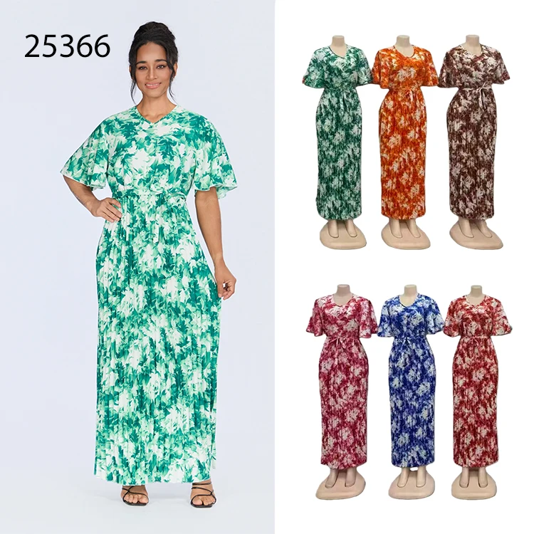 Wholesale Summer New Fashion Pleated Loose Casual Retro Printed Short Sleeve Dress