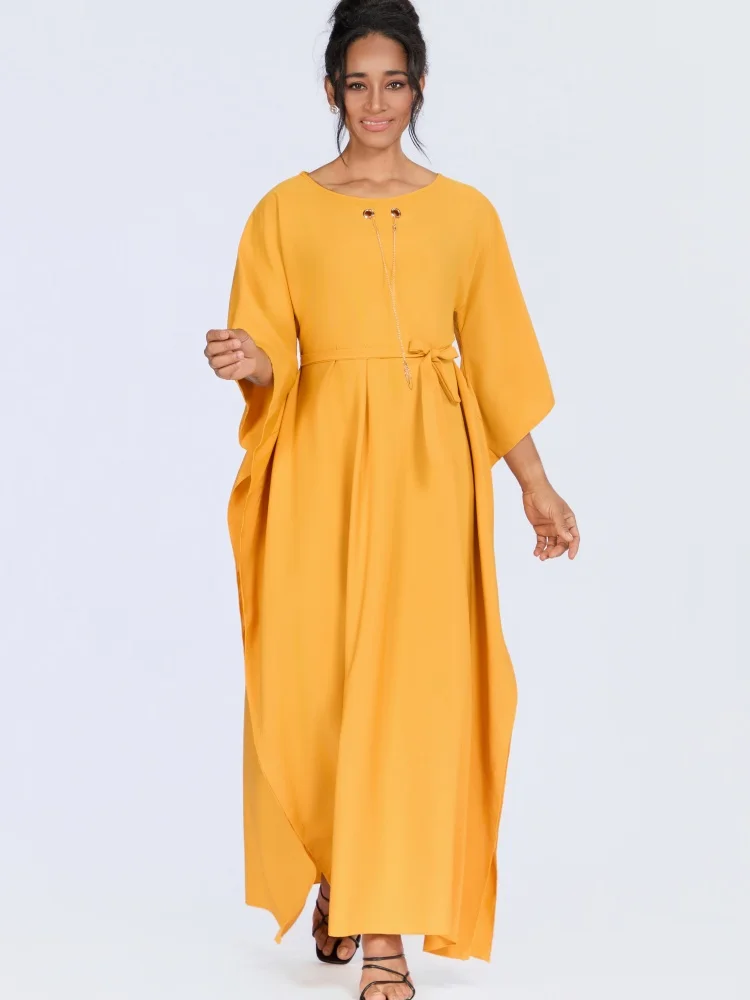 ZYHT 73571 Custom Elegant V-Neck Cape Sleeve Dresses Trendy Straight Yellow Maxi Party Gowns Modest Evening Dress for Women