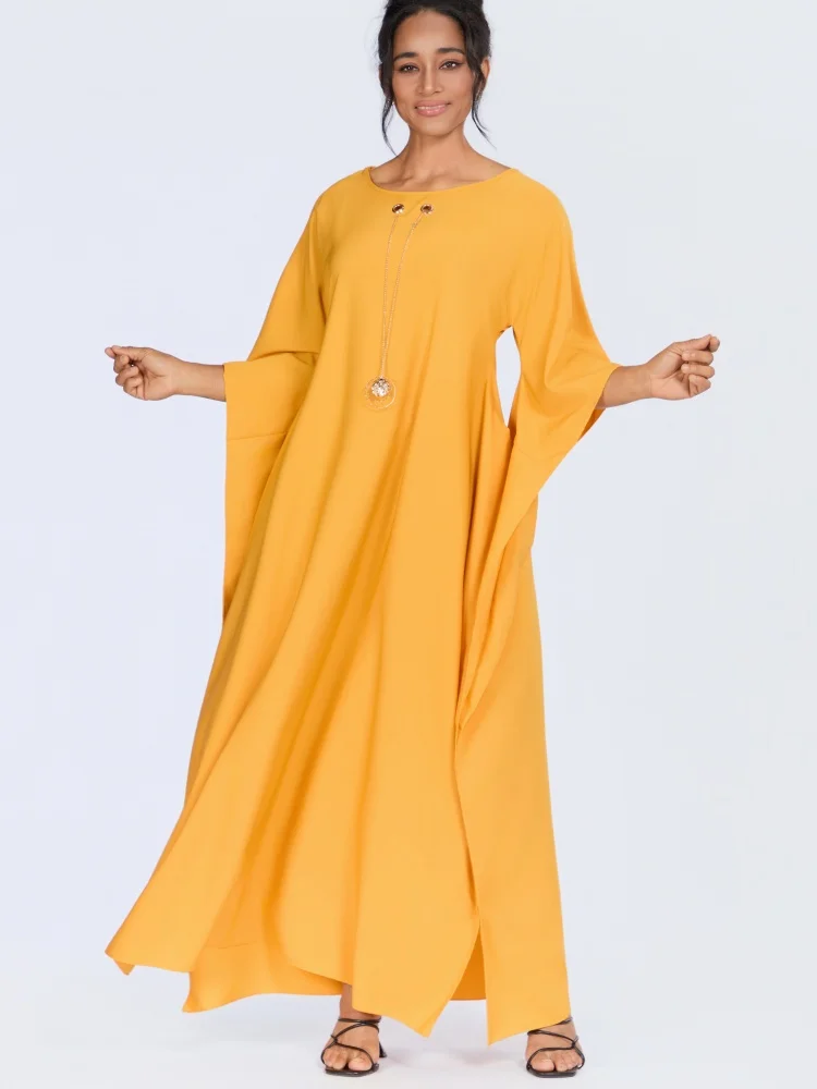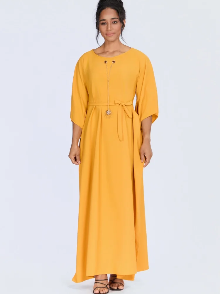 Wholesale New Middle Eastern Muslim Loose Women Robe Round Neck Long Sleeve Dress